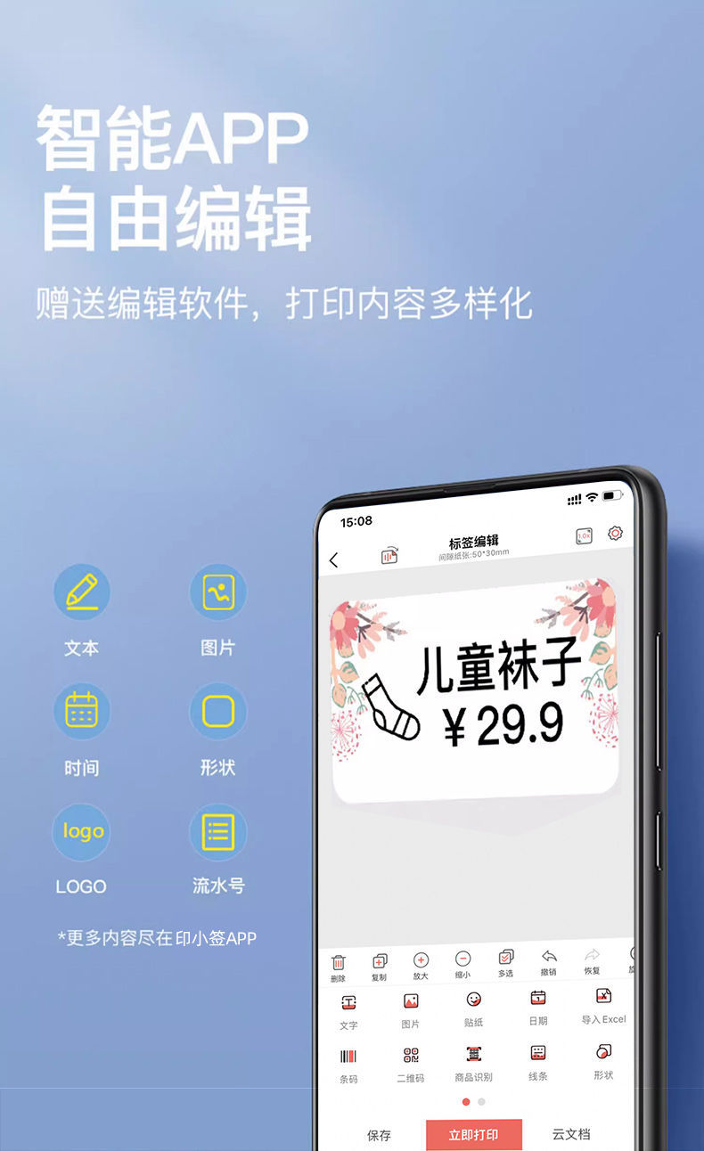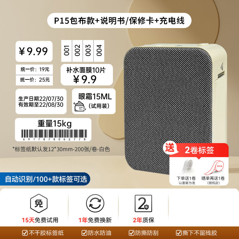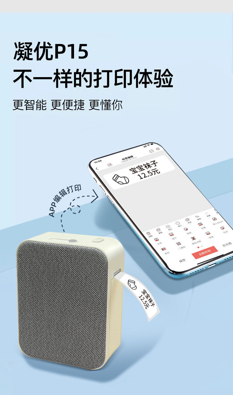 P15 스마트 생산 날짜 코더 상업용 휴대용 블루투스 열 의류 라벨 프린터 소형 미니
