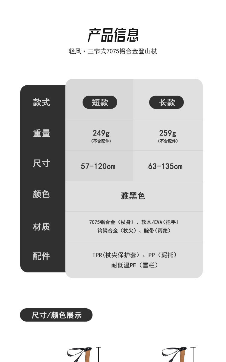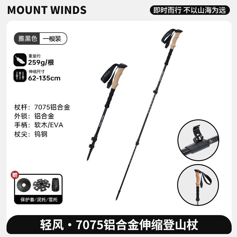 • 7075 텔레스코픽 모델 우아한 검정색 알루미늄 외부 잠금 장치 코르크 손잡이 싱글