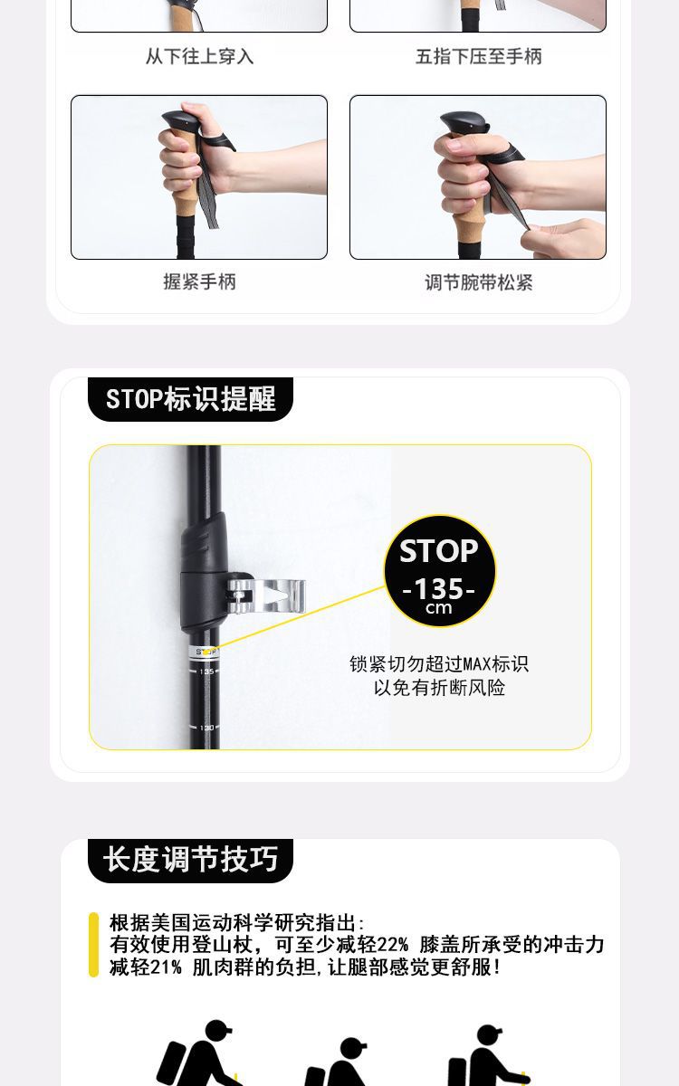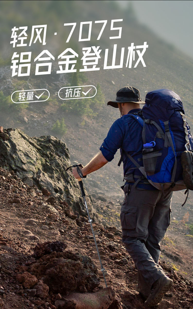 남성과 여성을 위한 텔레스코픽 장비, 초경량 미끄럼 방지 하이킹, 야외 전문 지팡이, 어린이용 7075 트레킹 스틱스토어 가기