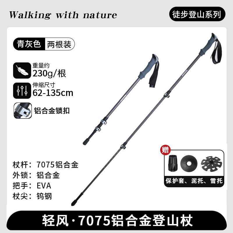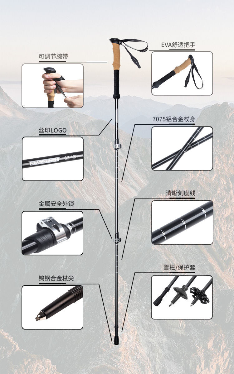 남성과 여성을 위한 텔레스코픽 장비, 초경량 미끄럼 방지 하이킹, 야외 전문 지팡이, 어린이용 7075 트레킹 스틱