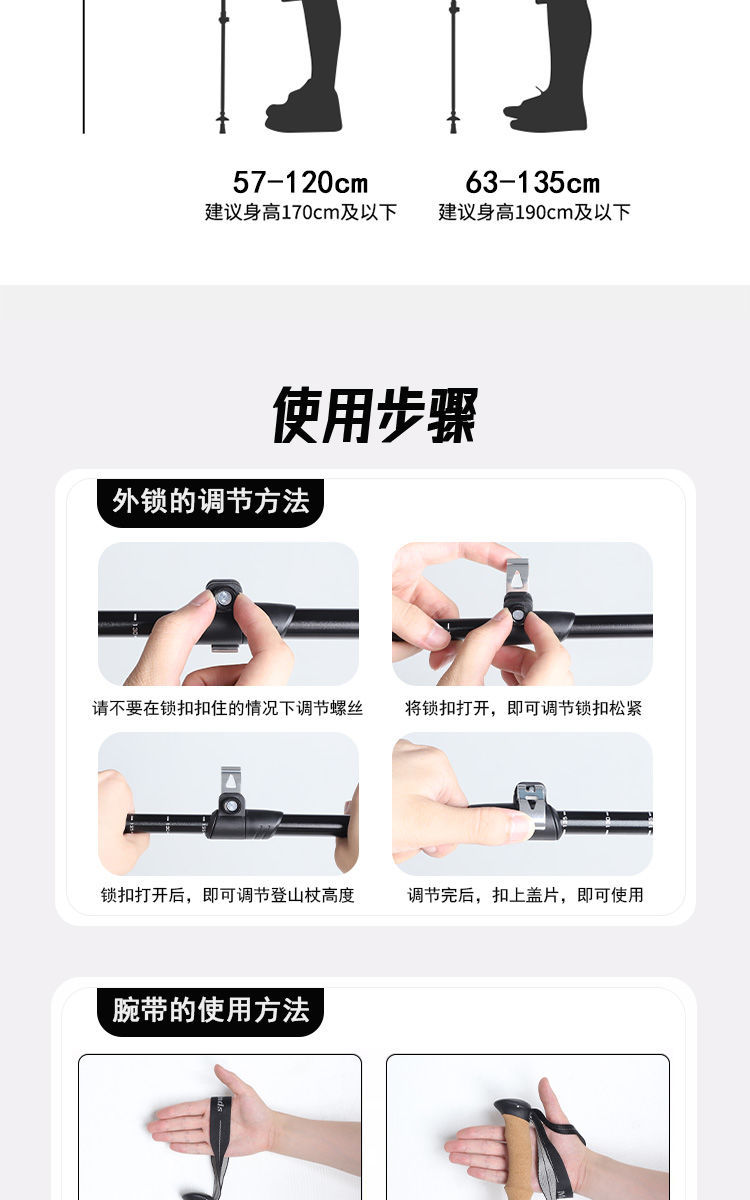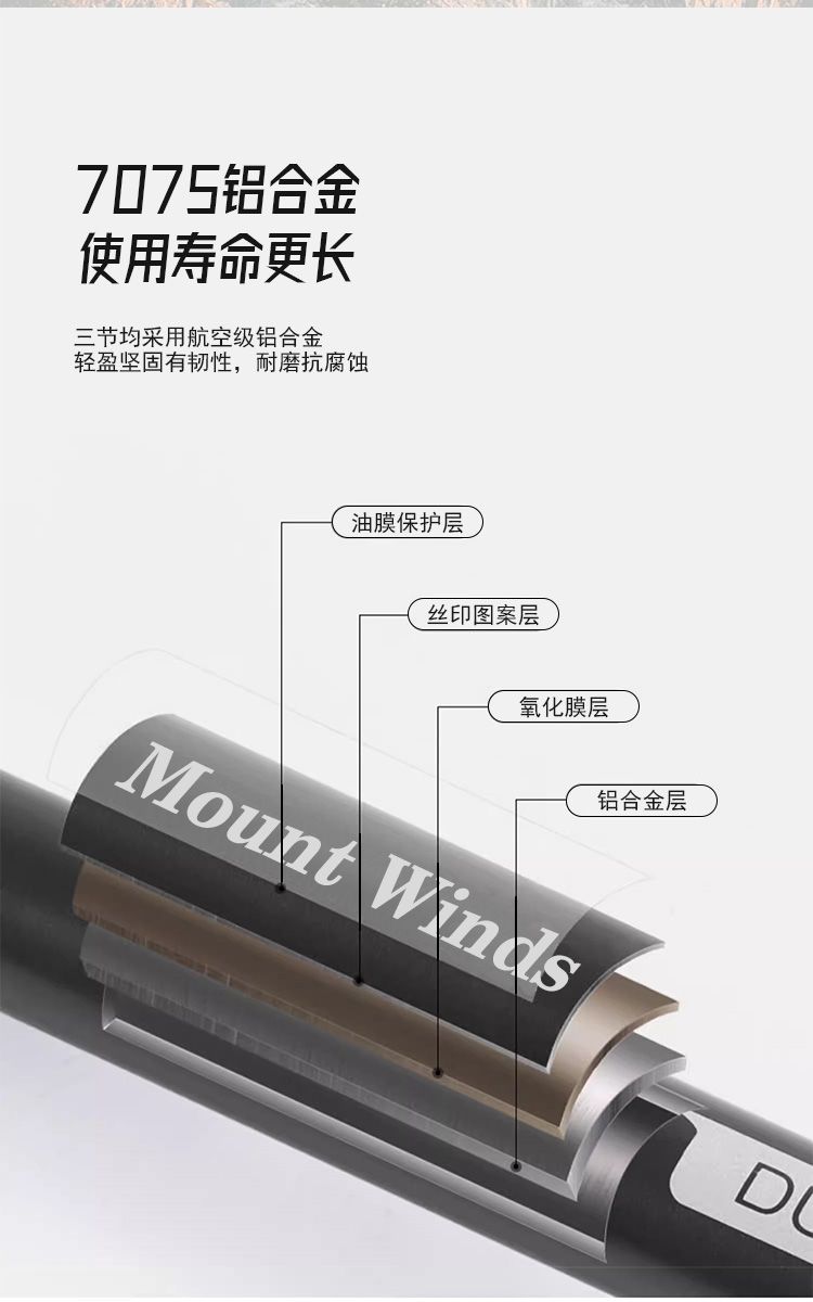 • 7075 텔레스코픽 모델 Yahei 알루미늄 외부 잠금 장치 코르크 손잡이 2개
