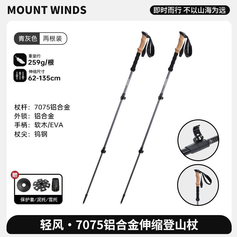 • 7075 텔레스코픽 블루 그레이 알루미늄 외부 잠금 장치 코르크 손잡이 싱글