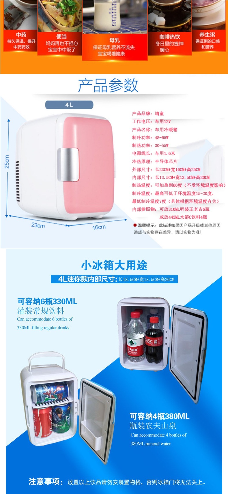 Jingtong 4L 자동차 냉장고 미니 냉기와 따뜻한 미니 냉장고 4L 자동차 홈 듀얼 사용 소형 기숙사 홈 냉장고스토어 가기