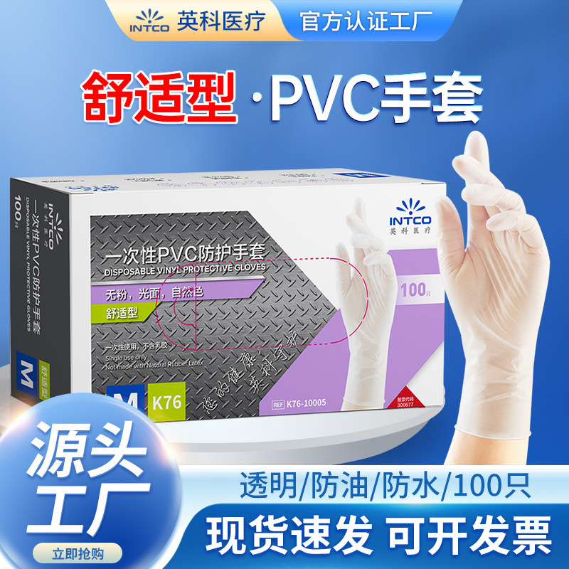 Yingke 의료 일회용 PVC 장갑 노동 보호 가사 분말없는 투명 식기 세척 방수 케이터링 PVC 장갑 도매스토어 가기
