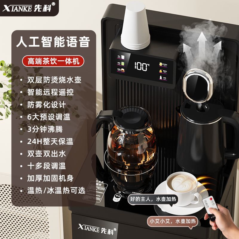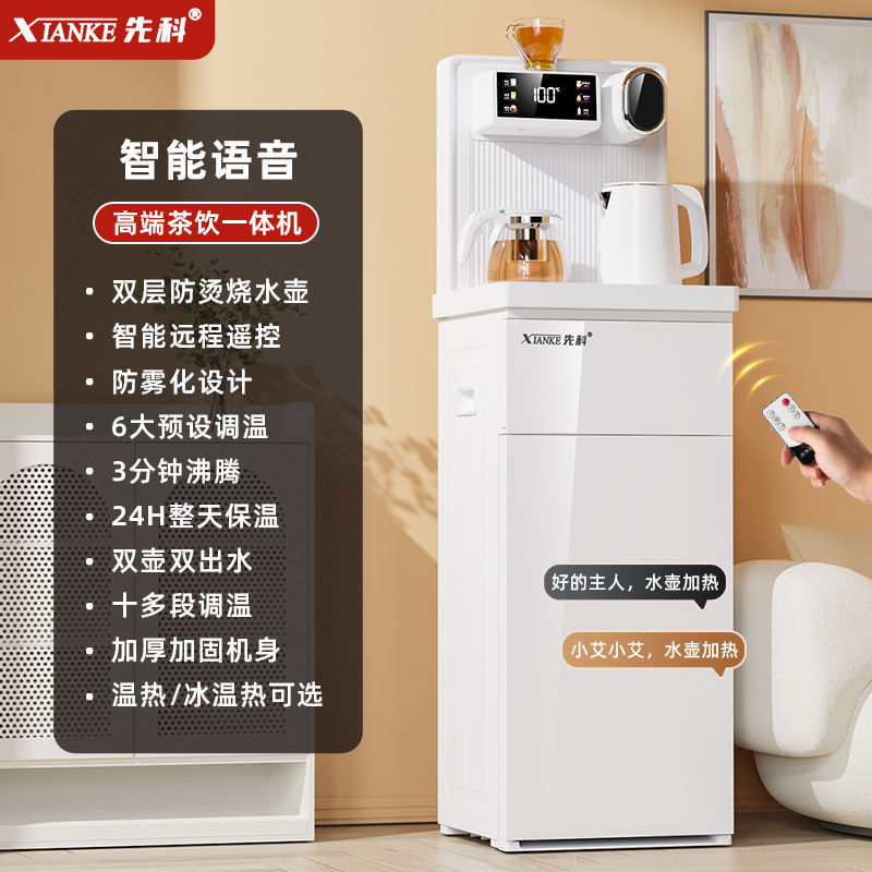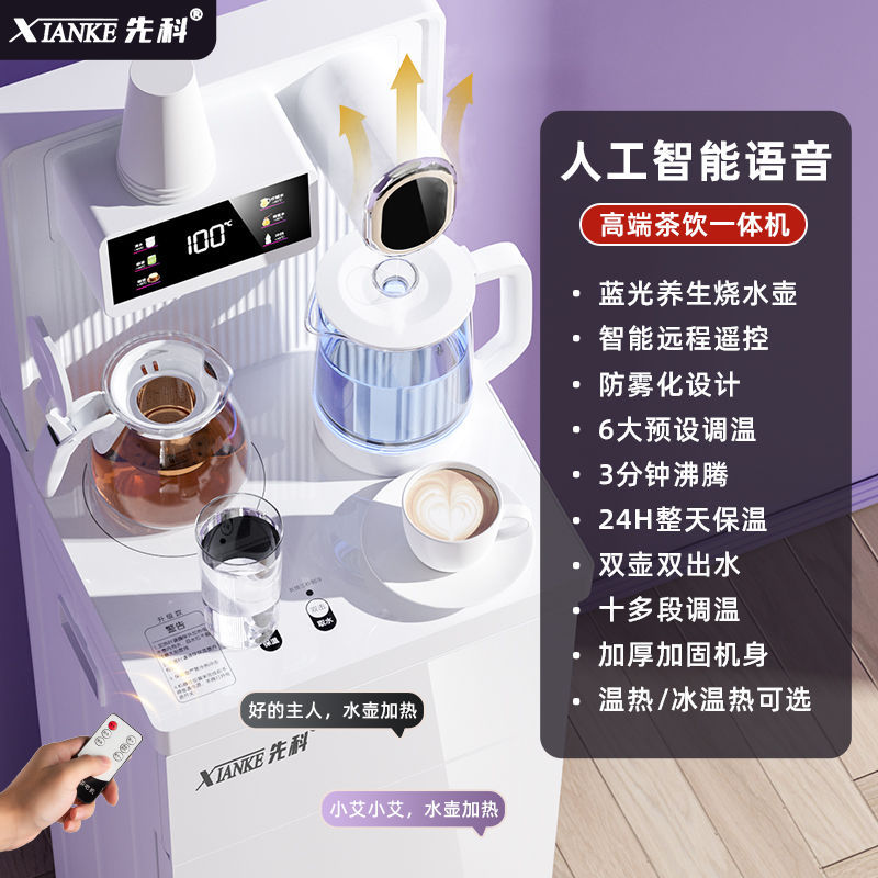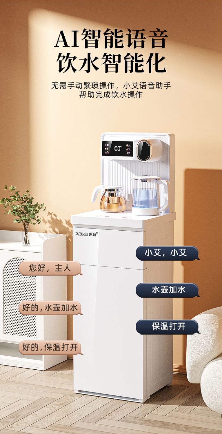 Xianke 물 디스펜서 차 바 기계 홈 낮은 버킷 지능형 음성 냉기와 뜨거운 자동 올인원 기계 2024 새로운스토어 가기