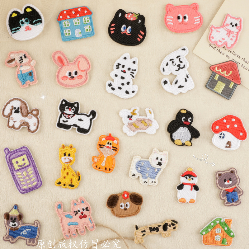 원래 컴퓨터 자수 라벨 미니 스몰 사이즈 자기 접착 만화 귀여운 동물 집 자수 패치 장식 천 스티커스토어 가기