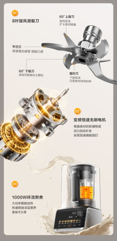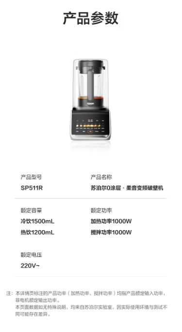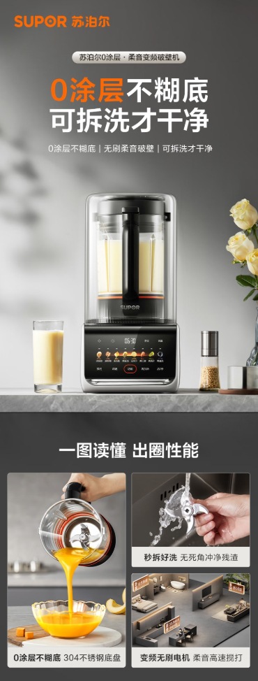 Supor 0 코팅 벽 파괴 기계 분리 및 세척 가능한 예약 두유 기계 1.5L 다기능 식품 보충제 주서기 SP511R스토어 가기