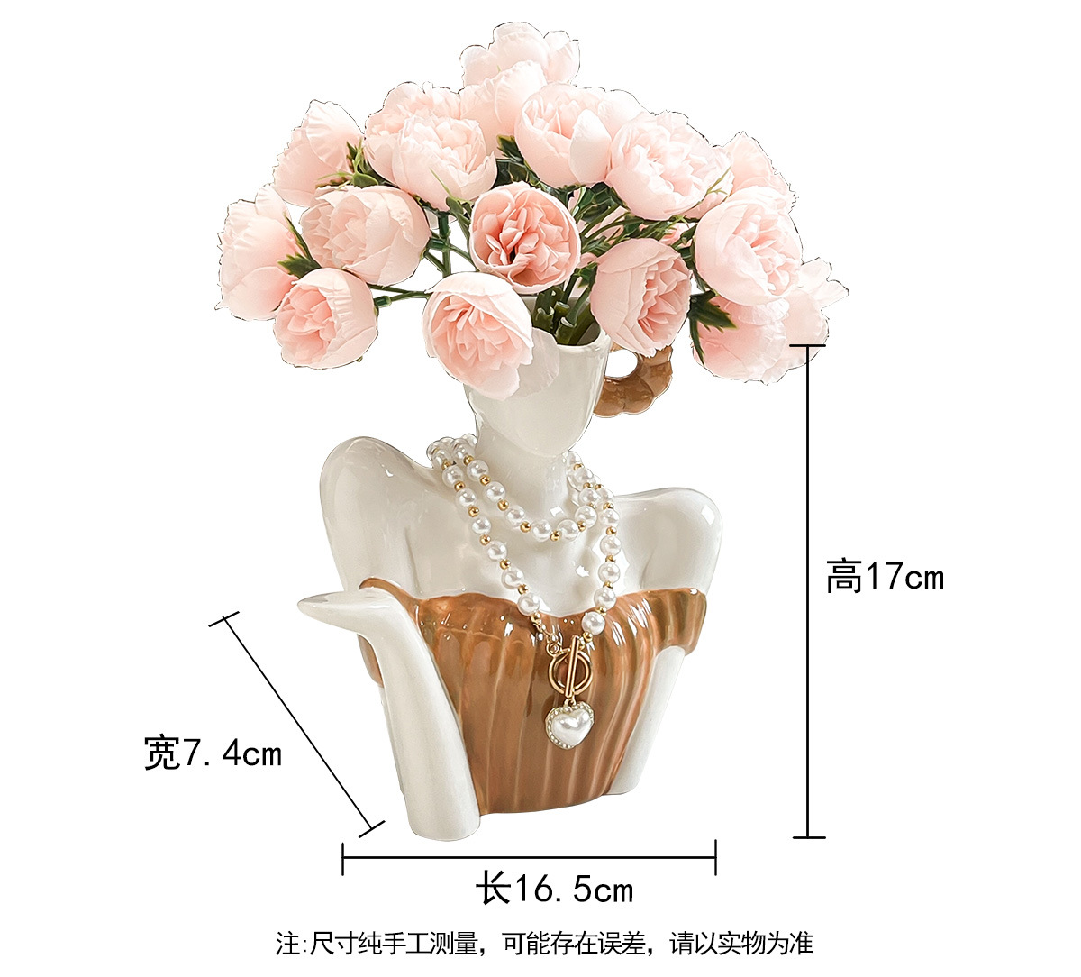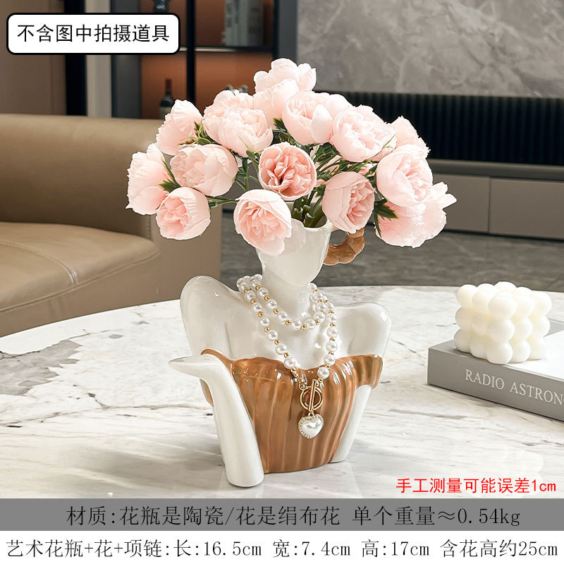 • 크림 커피 여신 꽃병 + 목걸이 + 핑크 모란 1송이
