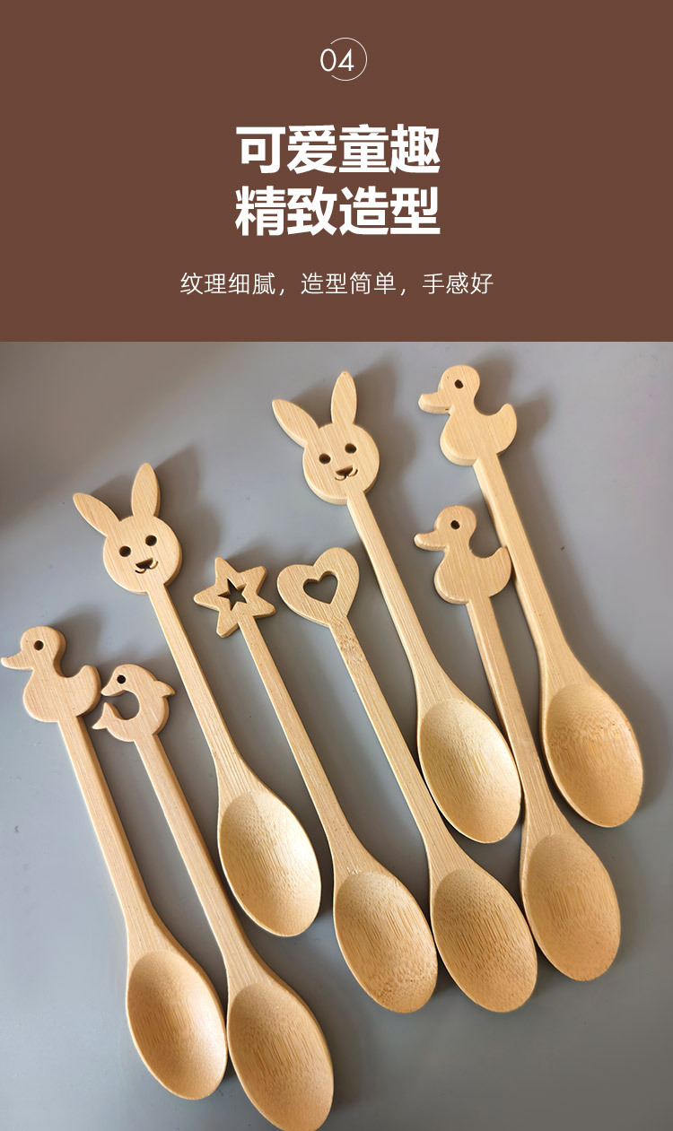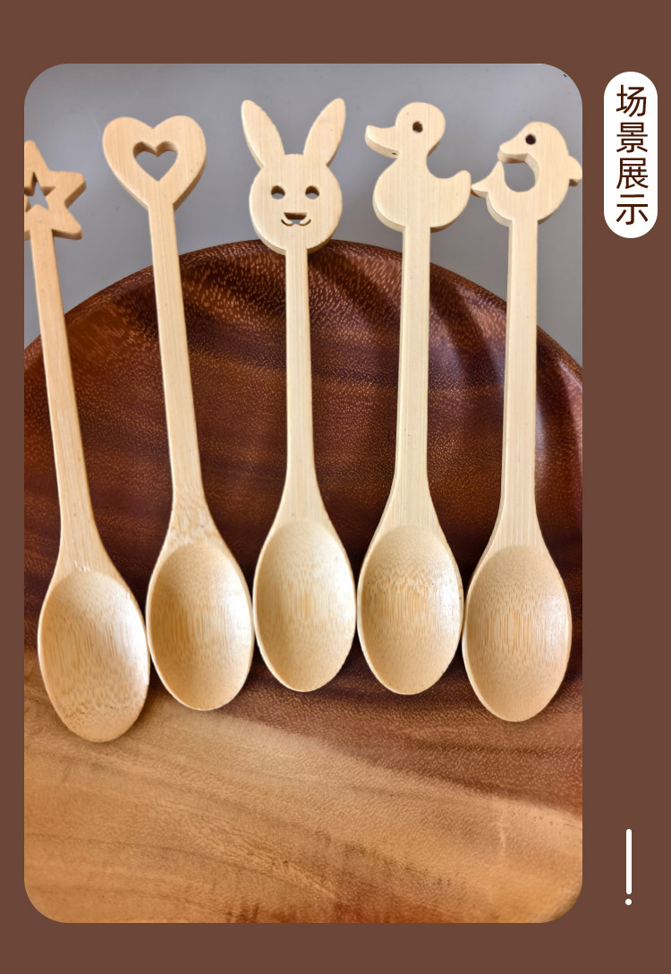대나무 만화 작은 숟가락 아이스크림 숟가락 커피 숟가락 쌀 숟가락 조미료 숟가락 혼합 숟가락 가정용 숟가락 고가의 나무 숟가락스토어 가기