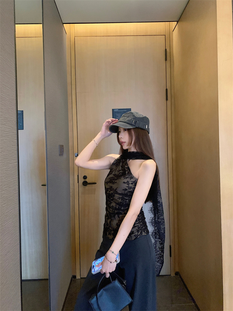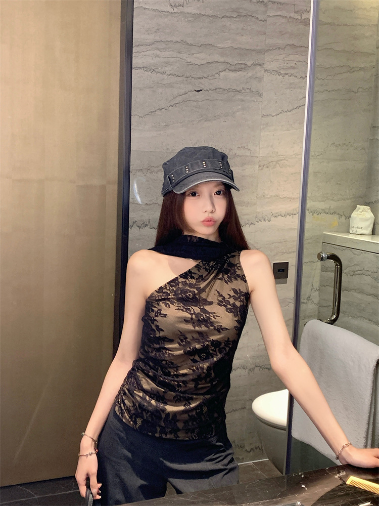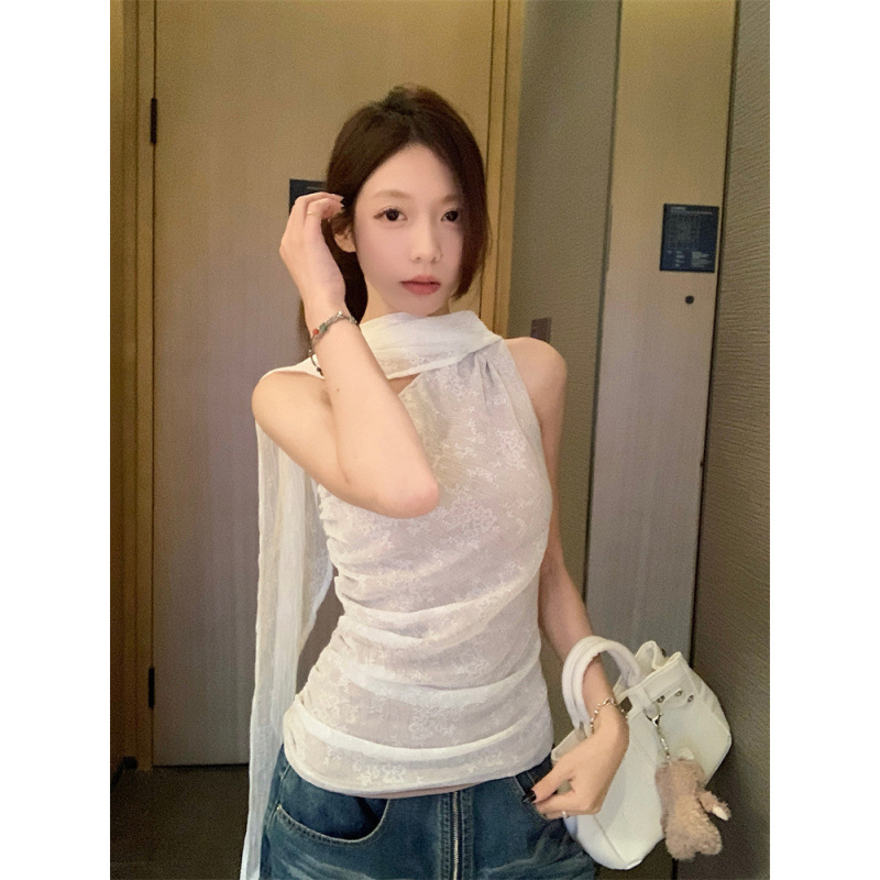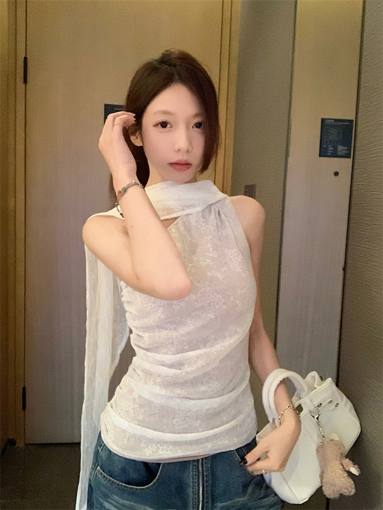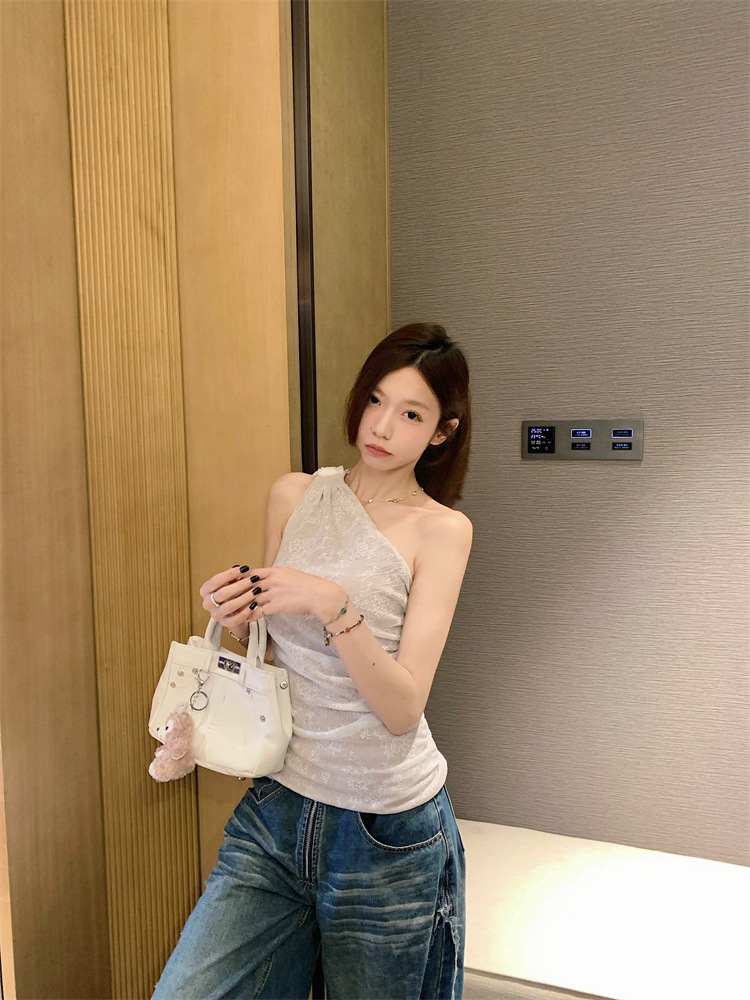 실제 샷 실제 가격 ~ 화이트 레이스 넥 스트랩 재킷 여성 여름 순수한 아 민소매 조끼를 안고 싶어스토어 가기