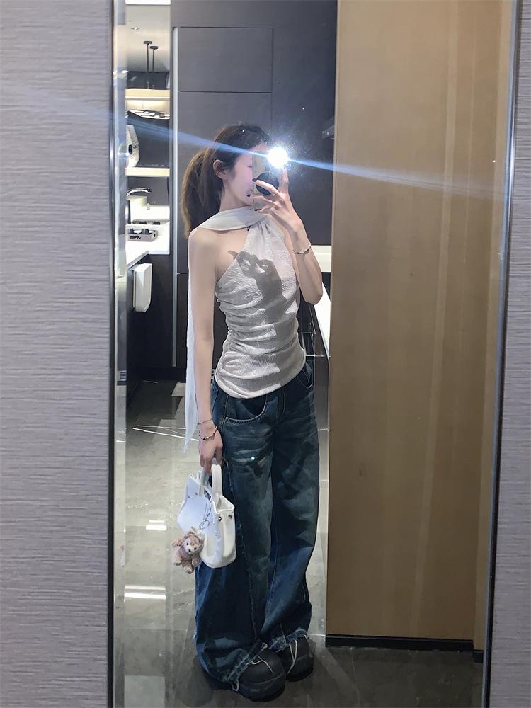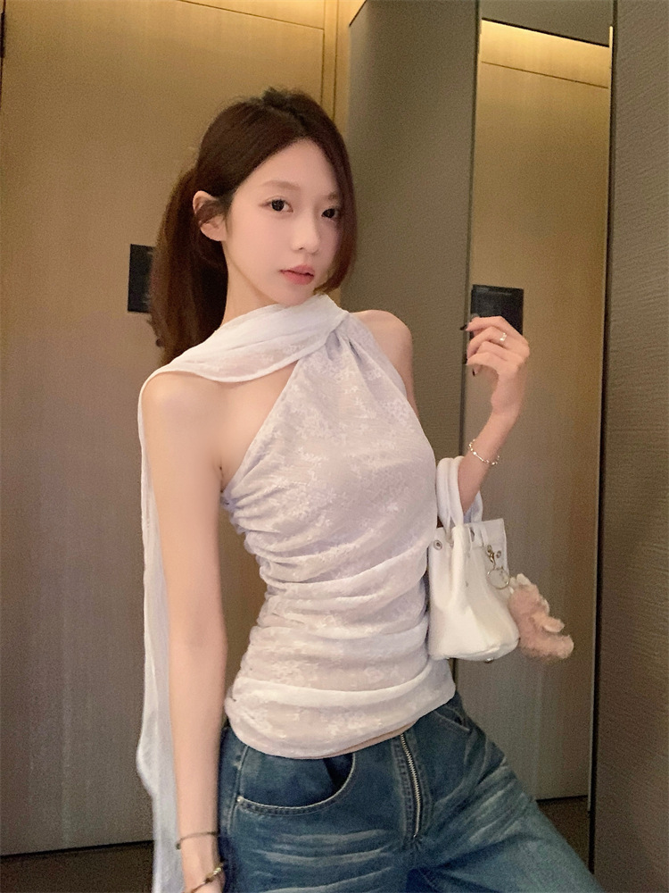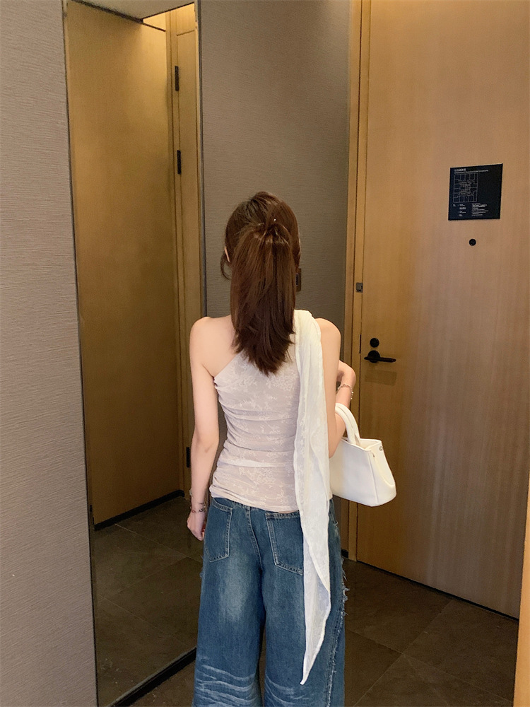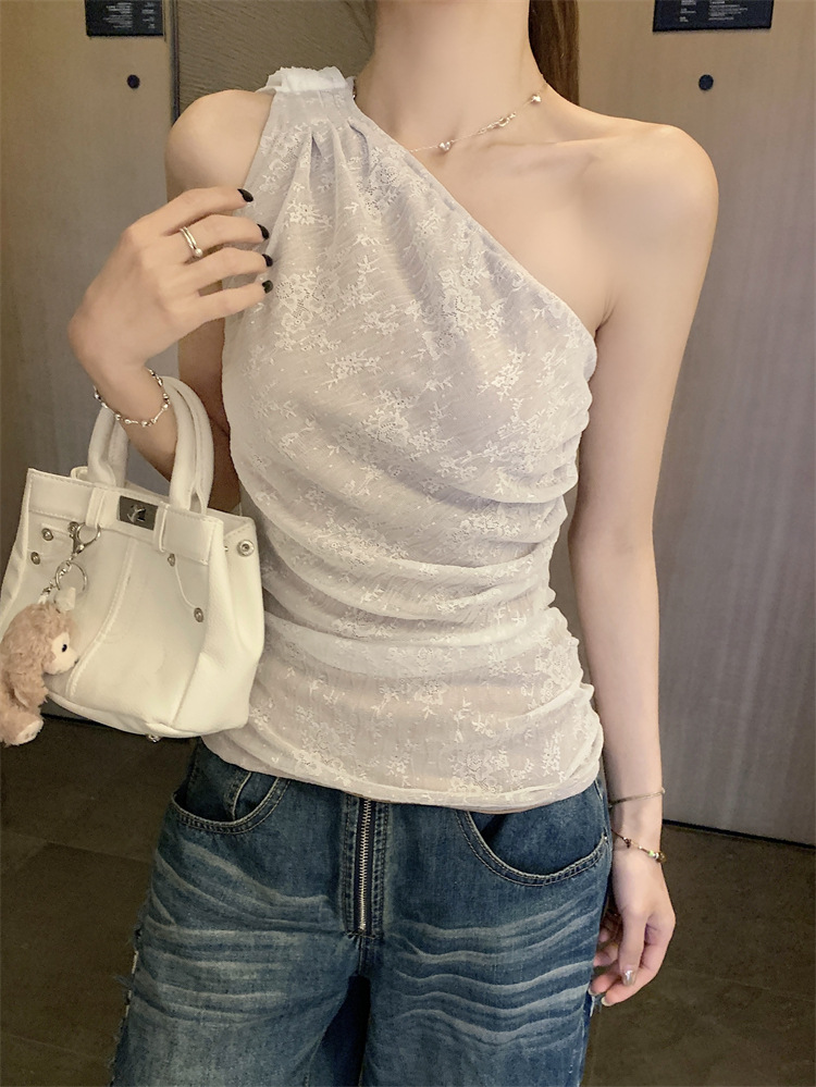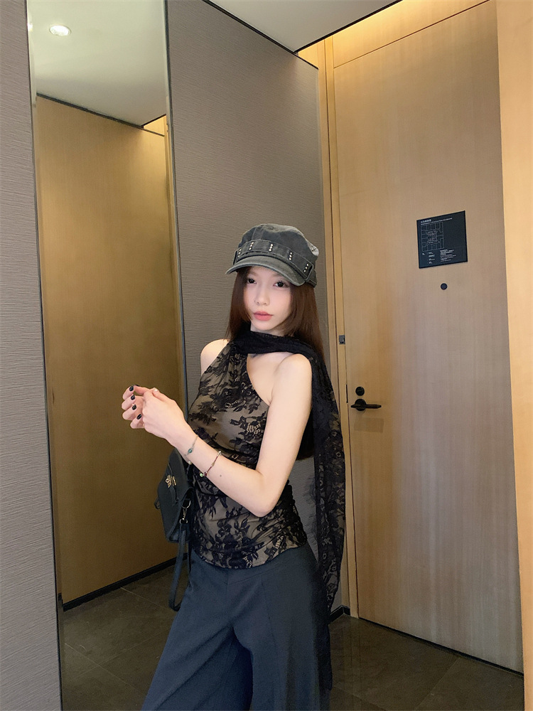 실제 샷 실제 가격 ~ 화이트 레이스 넥 스트랩 재킷 여성 여름 순수한 아 민소매 조끼를 안고 싶어스토어 가기