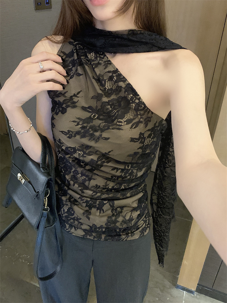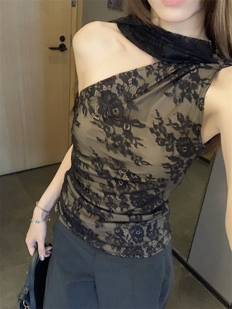 실제 샷 실제 가격 ~ 화이트 레이스 넥 스트랩 재킷 여성 여름 순수한 아 민소매 조끼를 안고 싶어