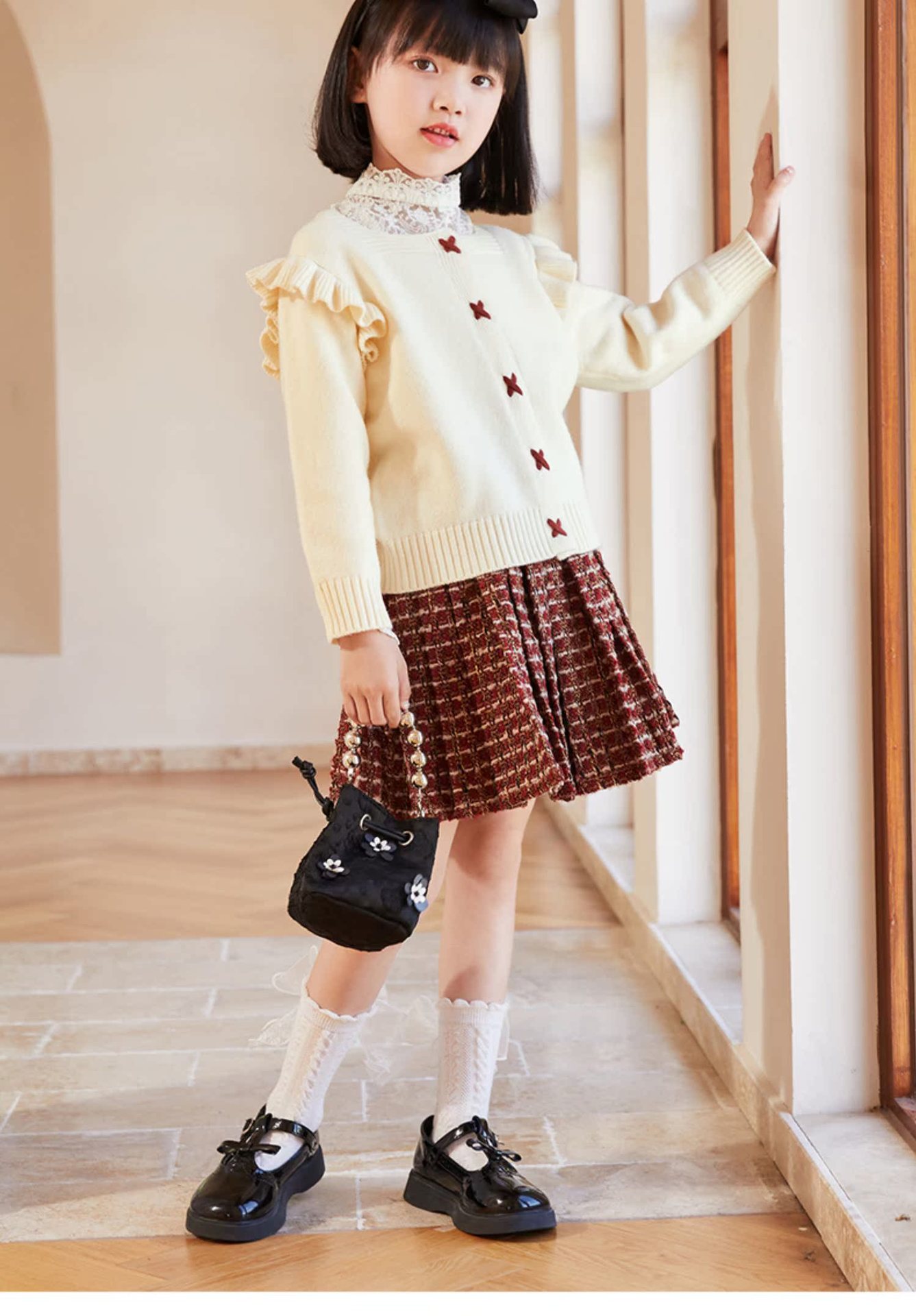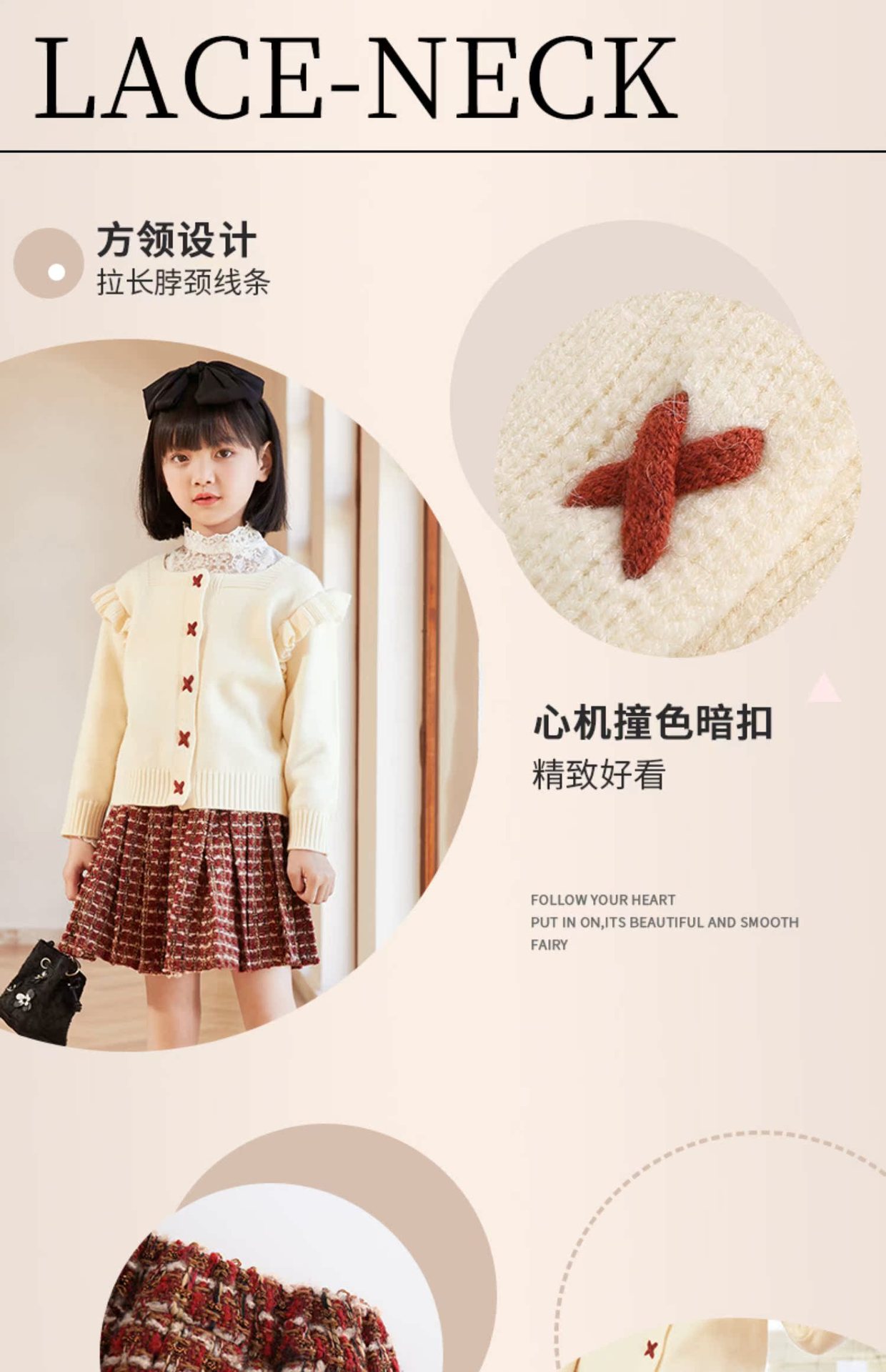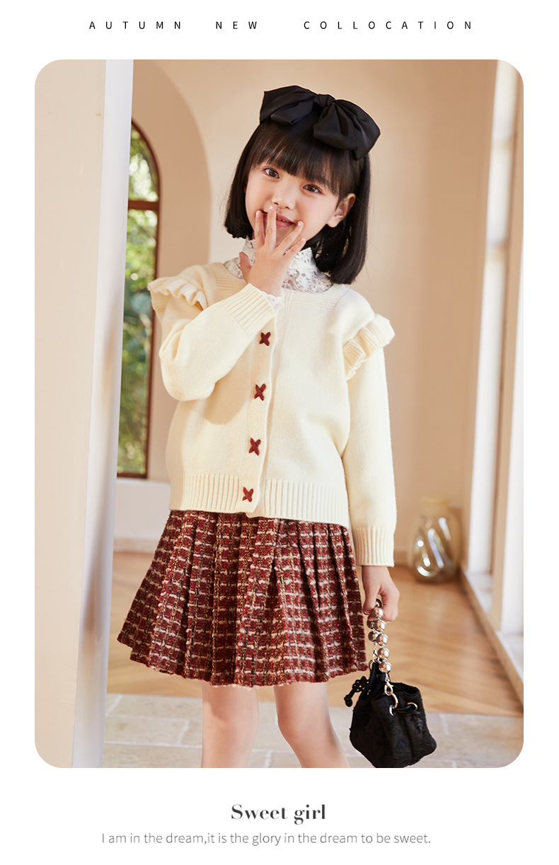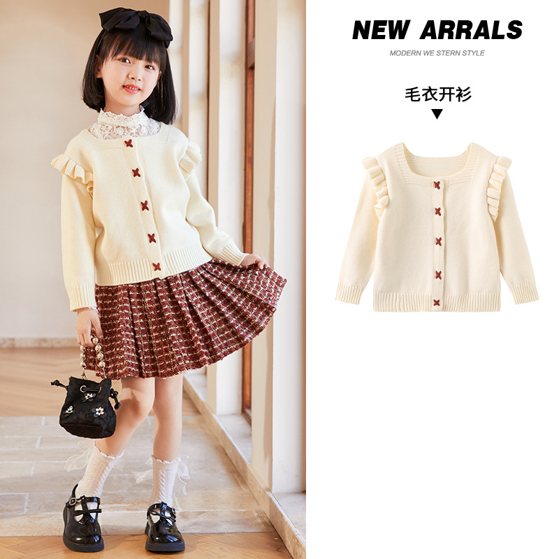 어린 소녀 2025 봄과 가을 새로운 소녀 베이지 큰 어린이 니트 카디건 재킷 스웨터 서양식 가을 원피스스토어 가기