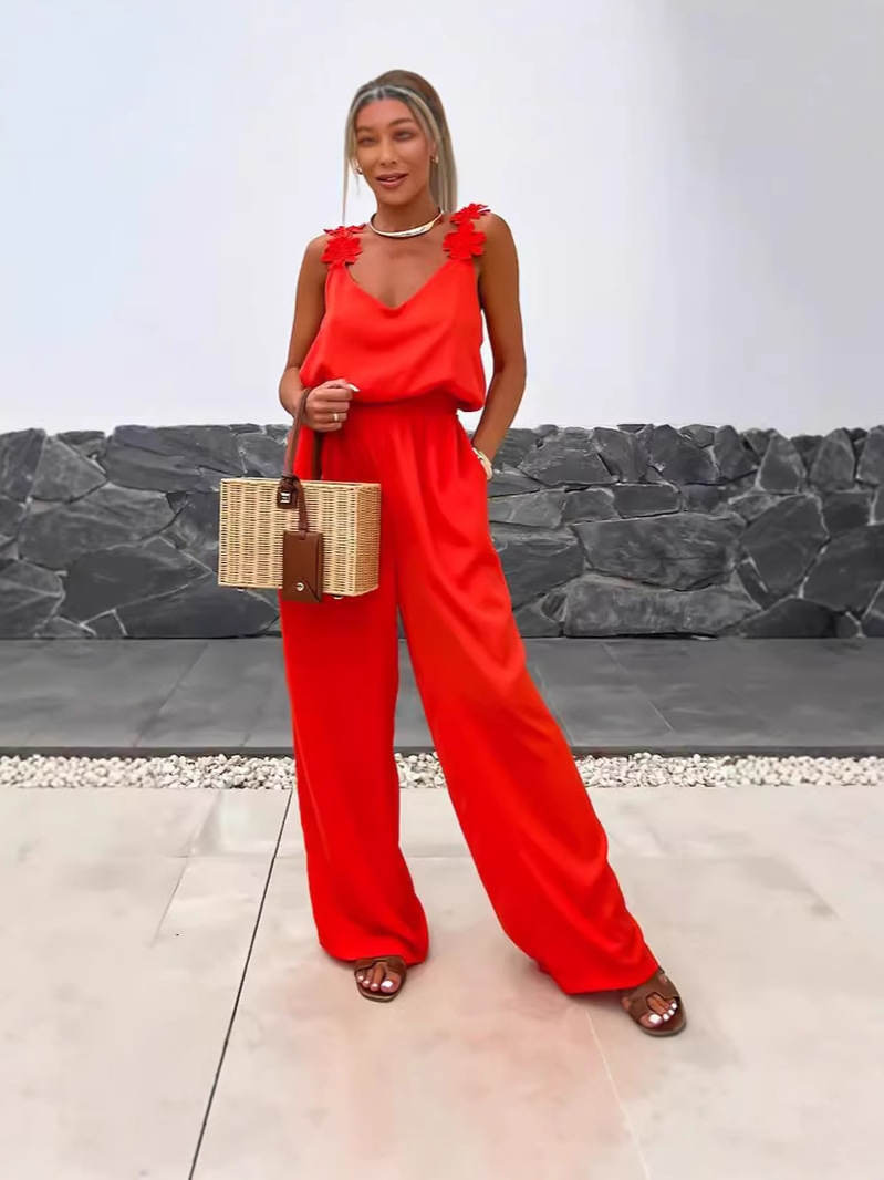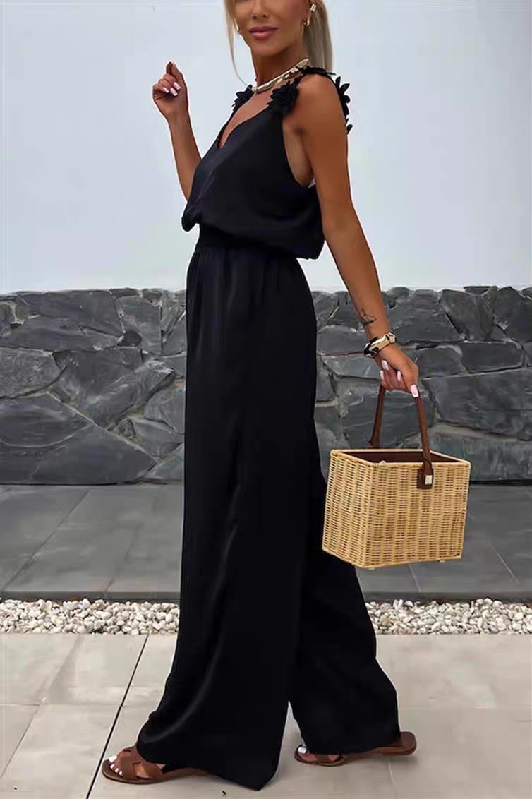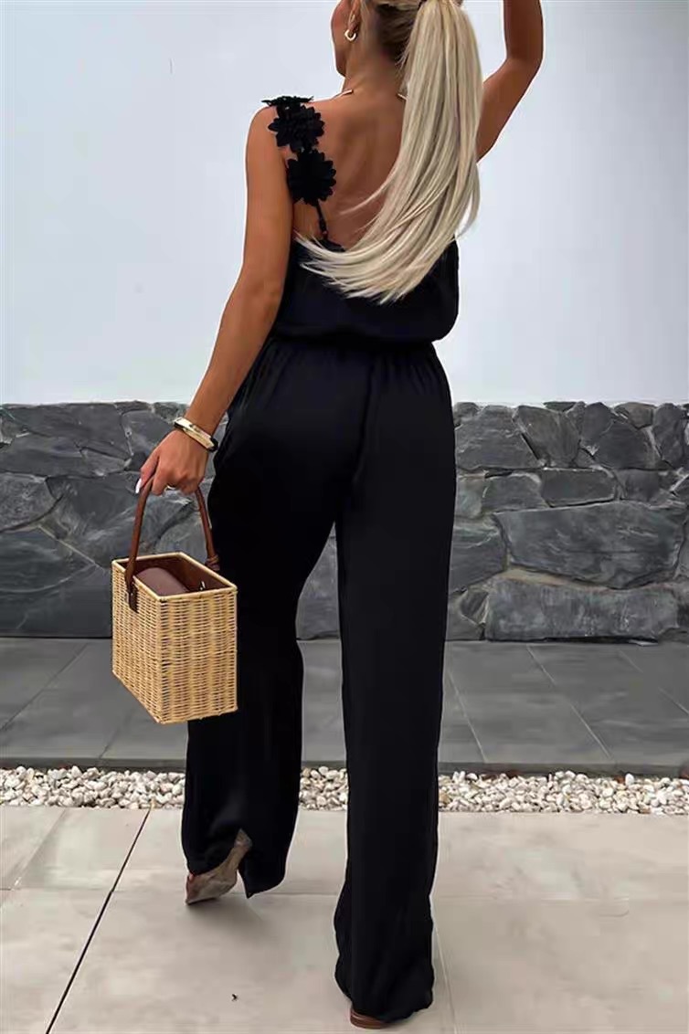 국경 2025 유럽과 미국 봄과 여름 새로운 서스펜더 민소매 주머니 점프 수트 INS 캐주얼 느슨한 여성 점프 수트