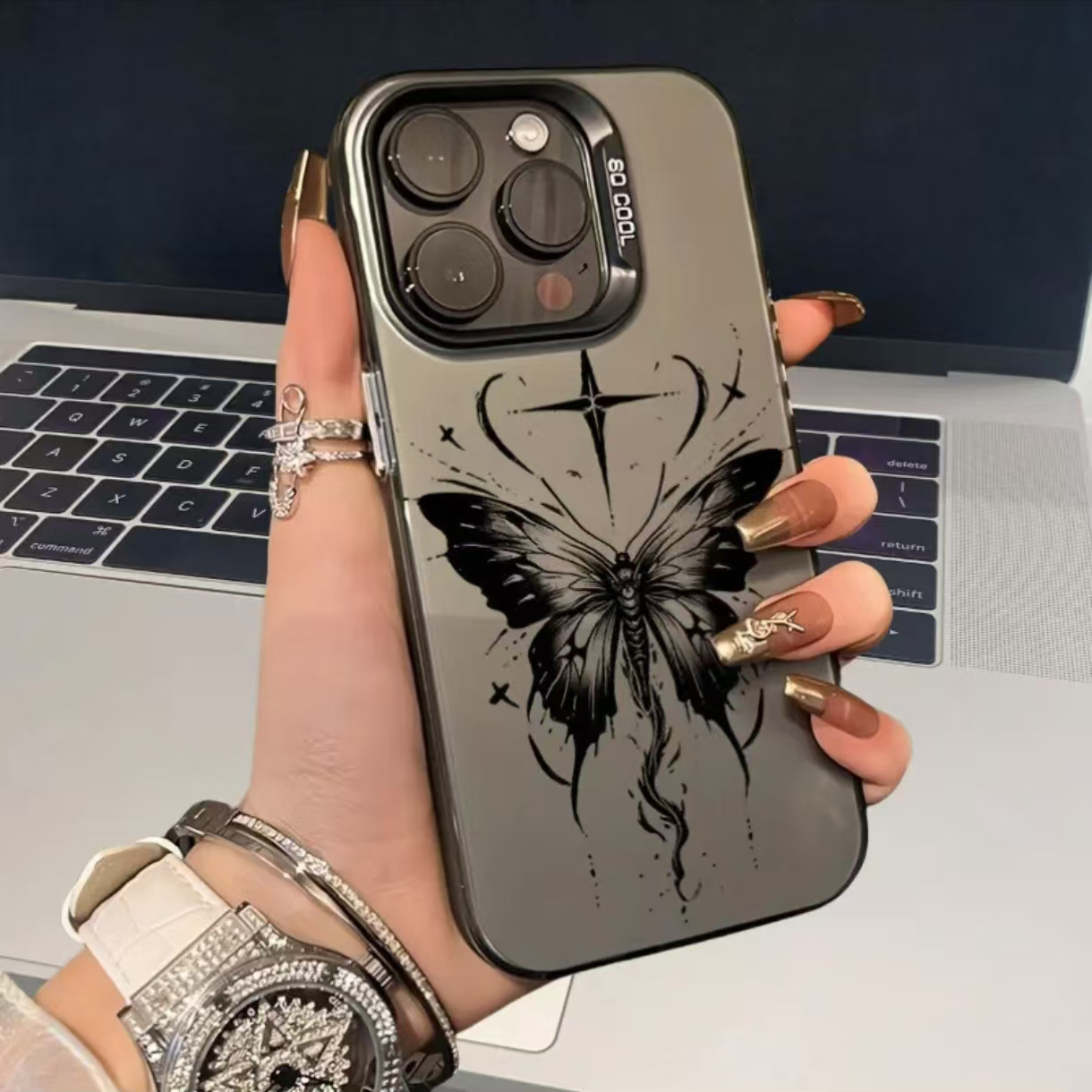 애플 15 휴대 전화 케이스 iPhone12promax Frosted 11 하드 쉘 14 플러스 신선한 13 블랙 잉크 나비
