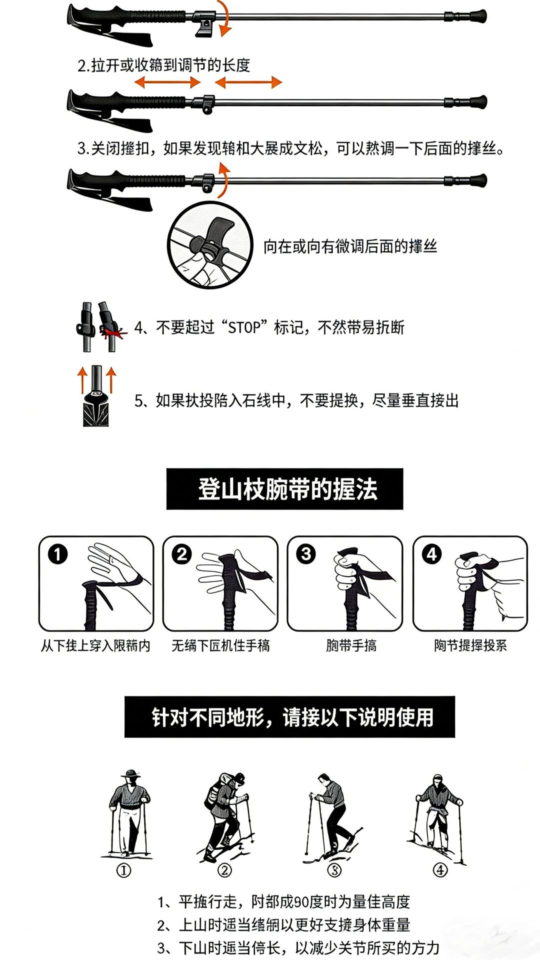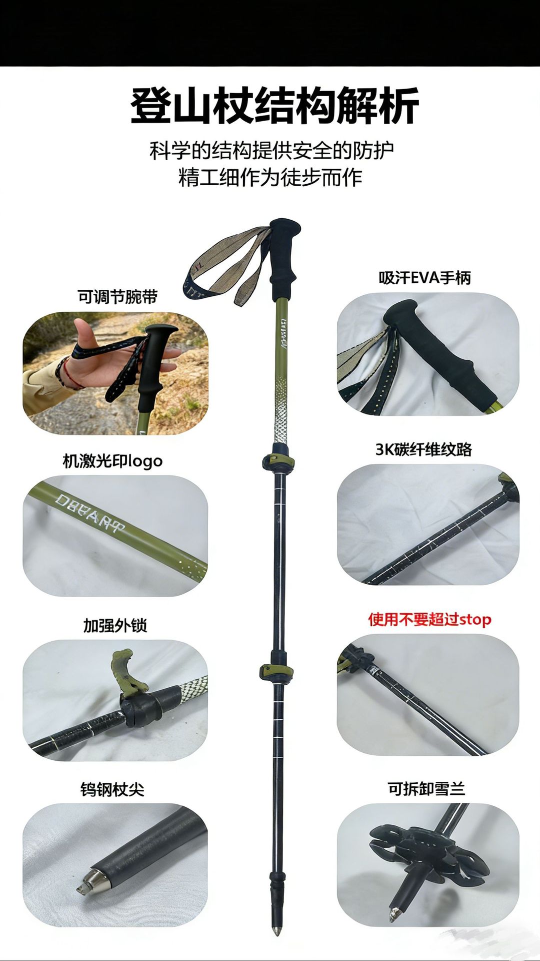 국경을 넘는 3K 탄소섬유 등산 스틱, 초경량 탄소섬유 접이식 지팡이, 남녀 등산 장비, 전문 야외 하이킹스토어 가기