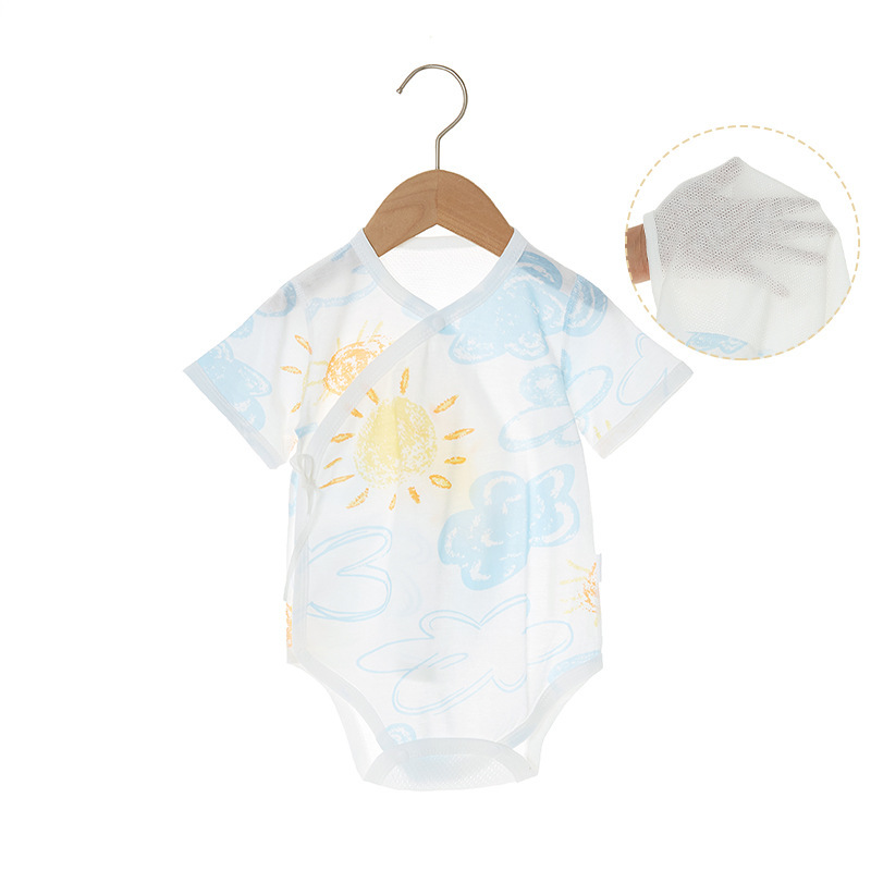 신생아 아기 가방 여름 얇은 순수 코튼 점프 슈트 반팔 삼각형 크롤링 슈트 잠옷 아기 옷 여름 옷스토어 가기
