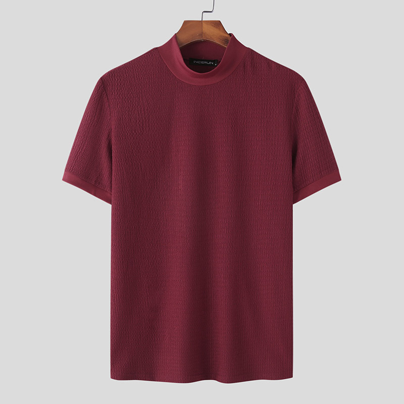 2025 국경 여름 뉴 남성 반팔 슬림 핏 심플 탑 니티드베이스 셔츠 하프 하이 칼라 솔리드 컬러 티셔츠