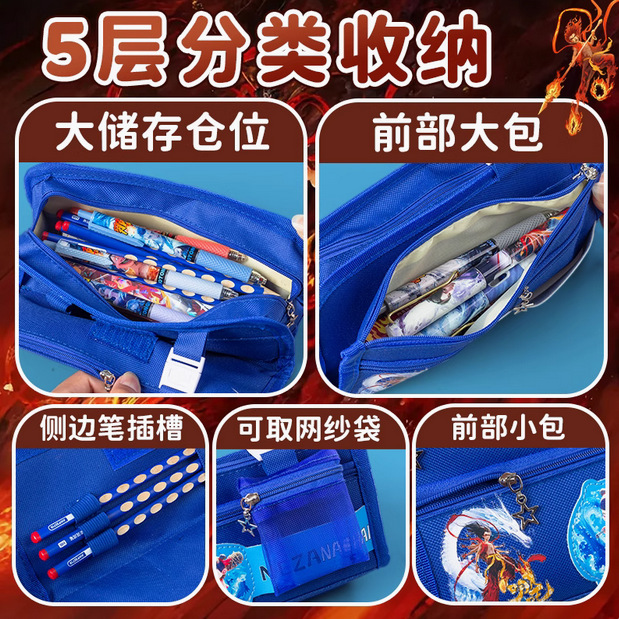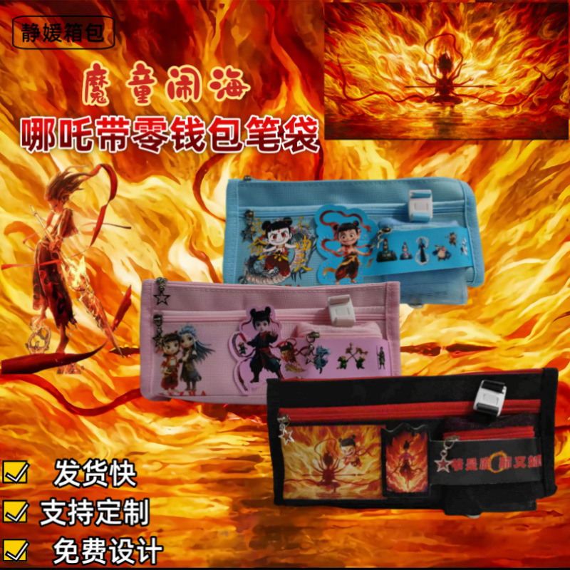 트렌디 한 2 차원 대용량 Nezha Ao Bing 연필 가방 문구 상자 인기 패션 동전 지갑 학생 문구 용품스토어 가기