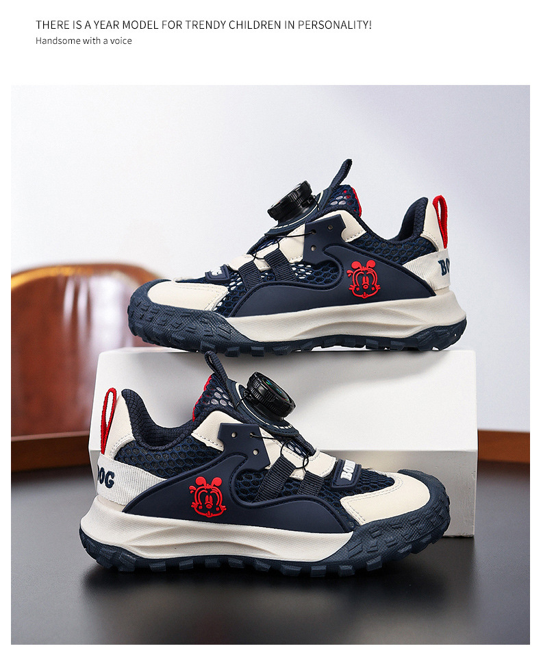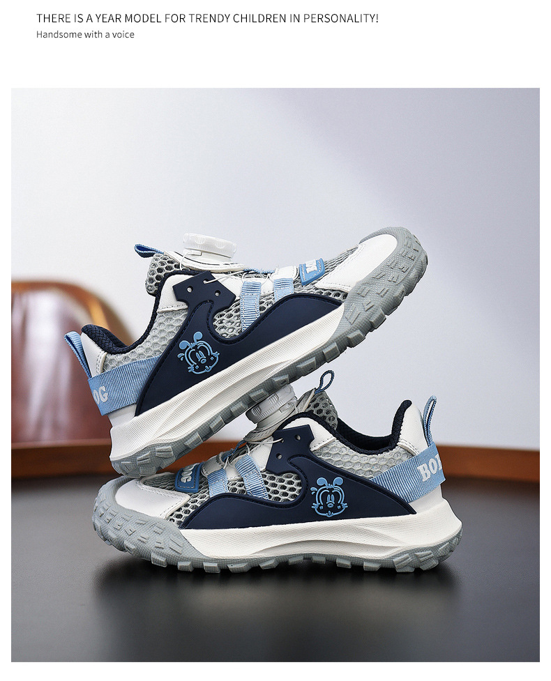 Babudou 소년 신발 여름 새로운 단일 메쉬 중공 통기성 중형 및 대형 어린이 야외 스포츠 신발 미끄럼 방지 및 내마모성