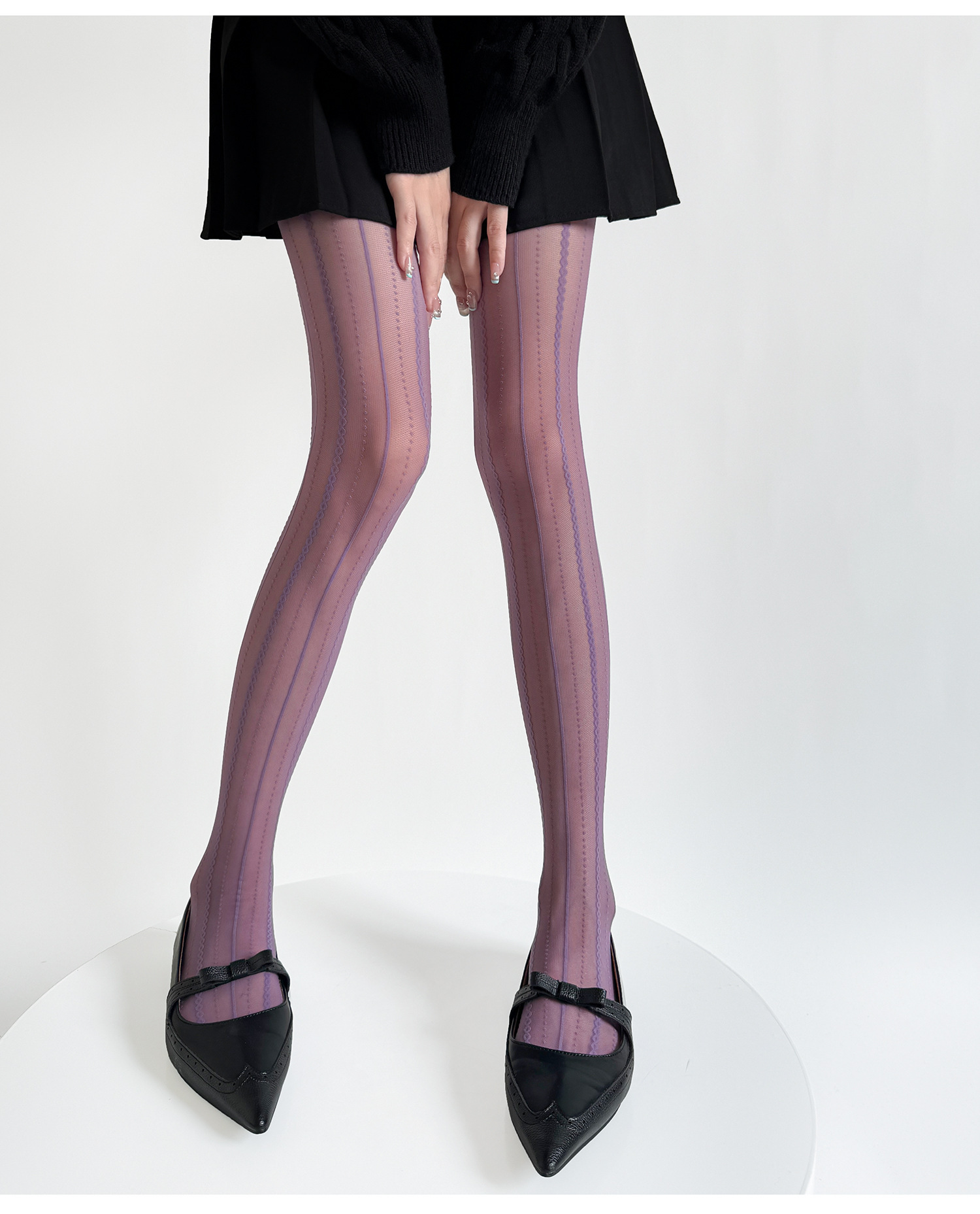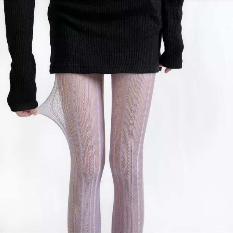 • 자카드 세로줄무늬 피쉬넷 스타킹 퍼플