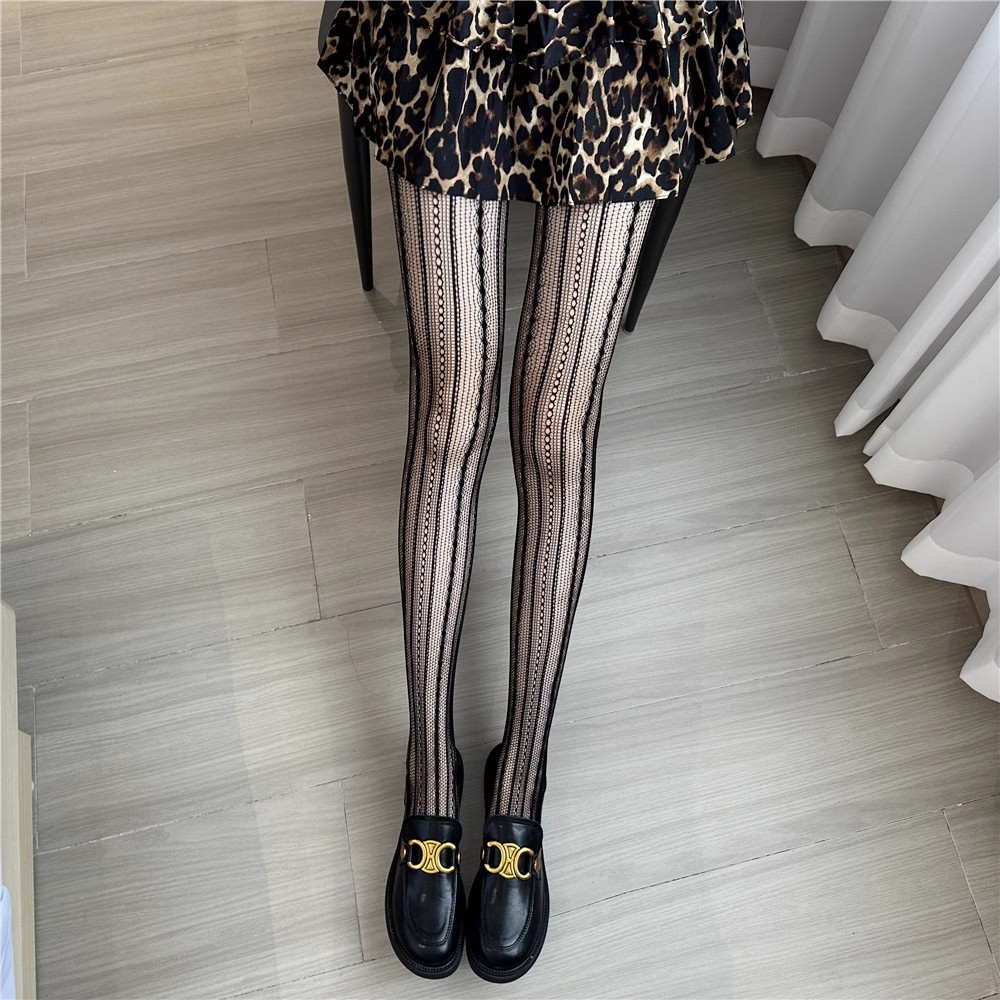• 자카드 세로줄무늬 피쉬넷 스타킹 그레이