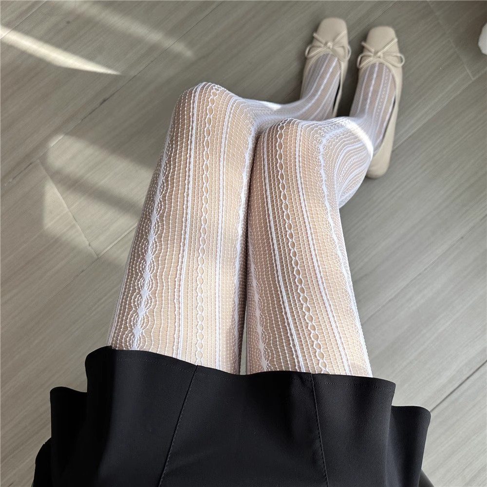 봄과 여름 얇은 줄무늬 빈 스타킹 섹시한 수직 자카드 레이스 트위스트 슬림베이스 테니스 스타킹