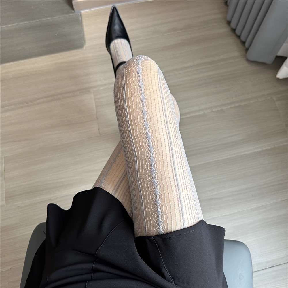 봄과 여름 얇은 줄무늬 빈 스타킹 섹시한 수직 자카드 레이스 트위스트 슬림베이스 테니스 스타킹스토어 가기