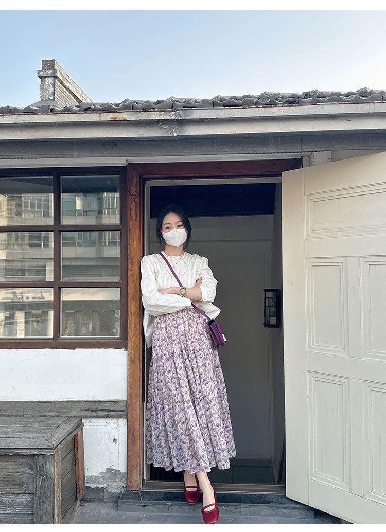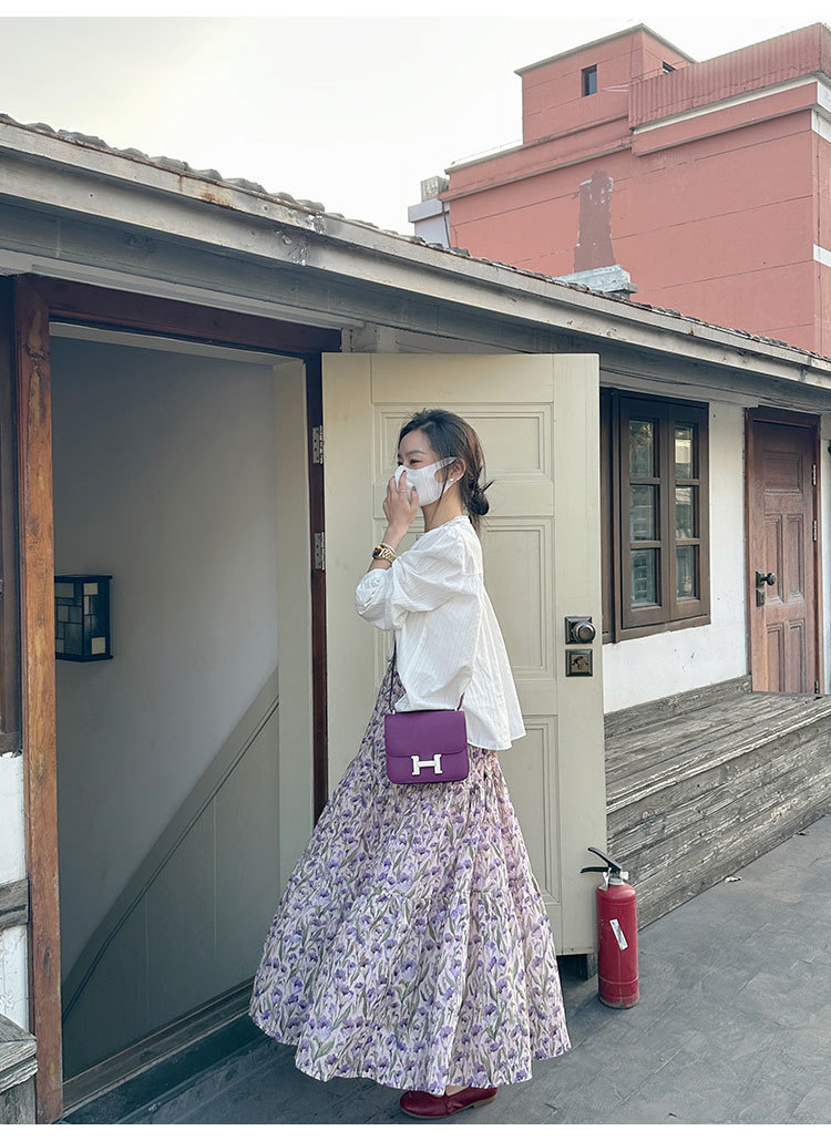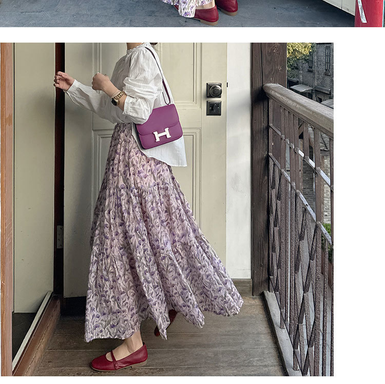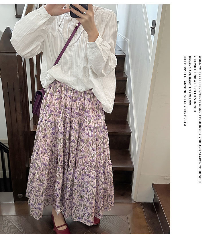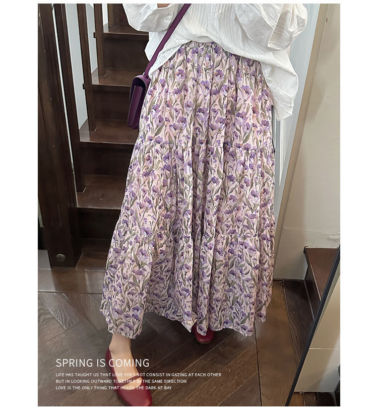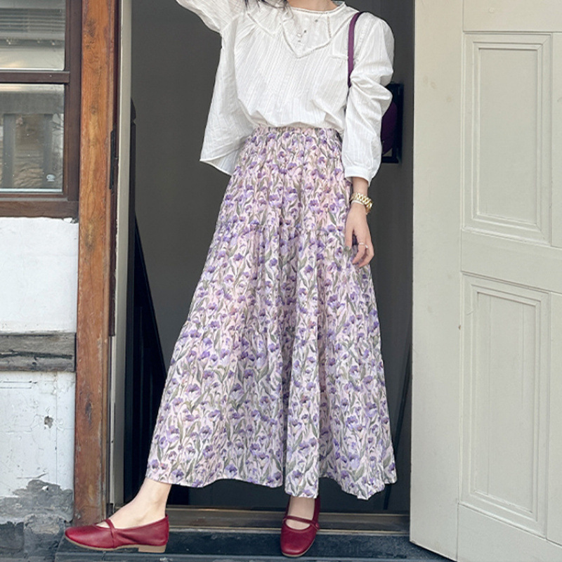 보라색 꽃 치마 여자 2025 여름 새로운 한국 스타일 부드러운 높은 허리 간단한 캐주얼 긴 치마스토어 가기