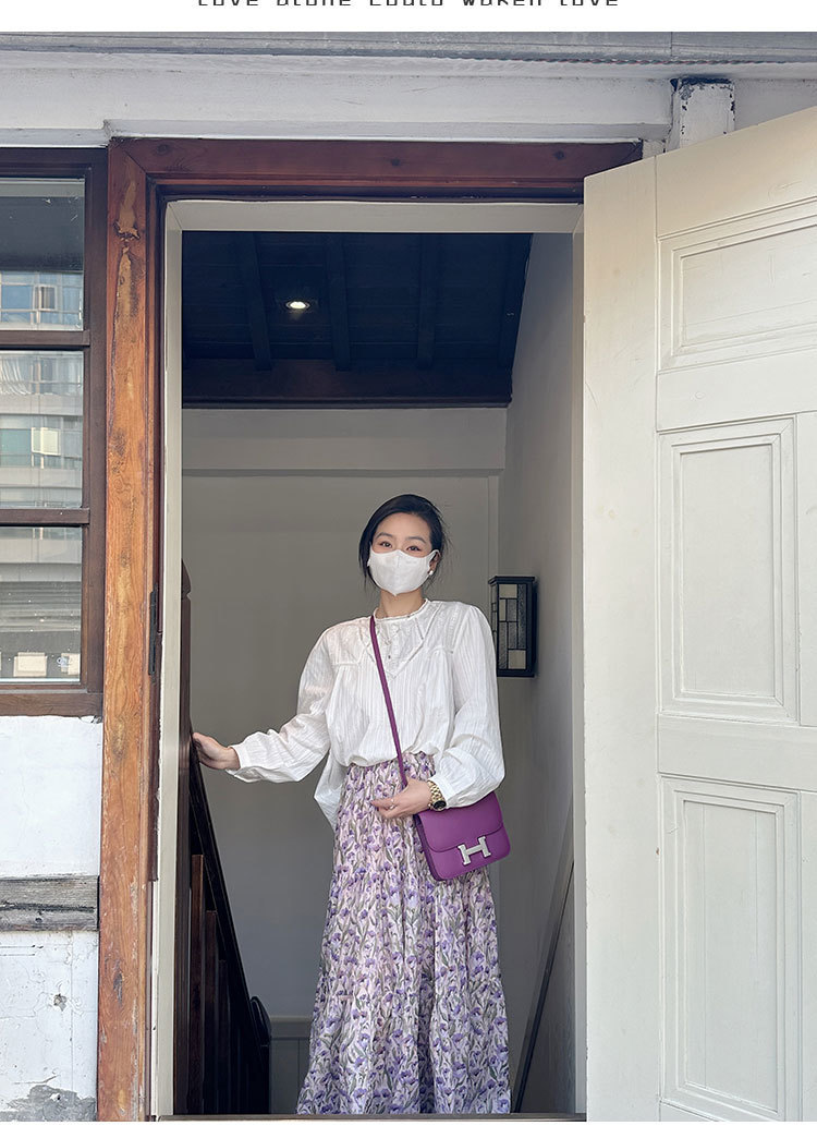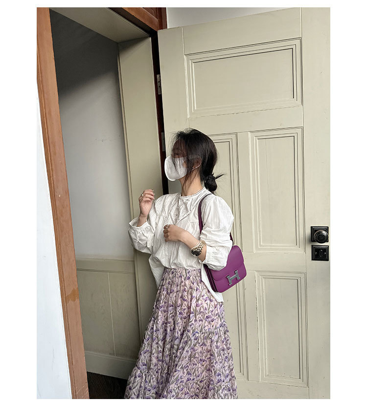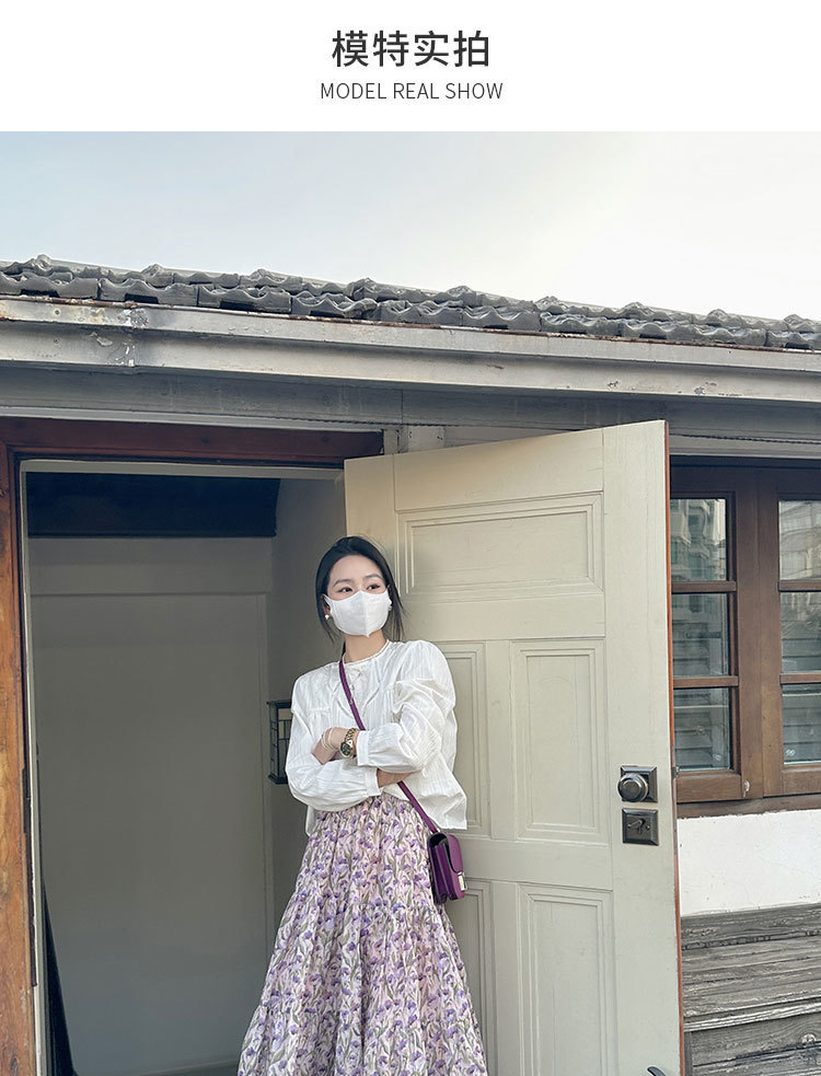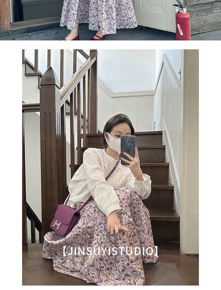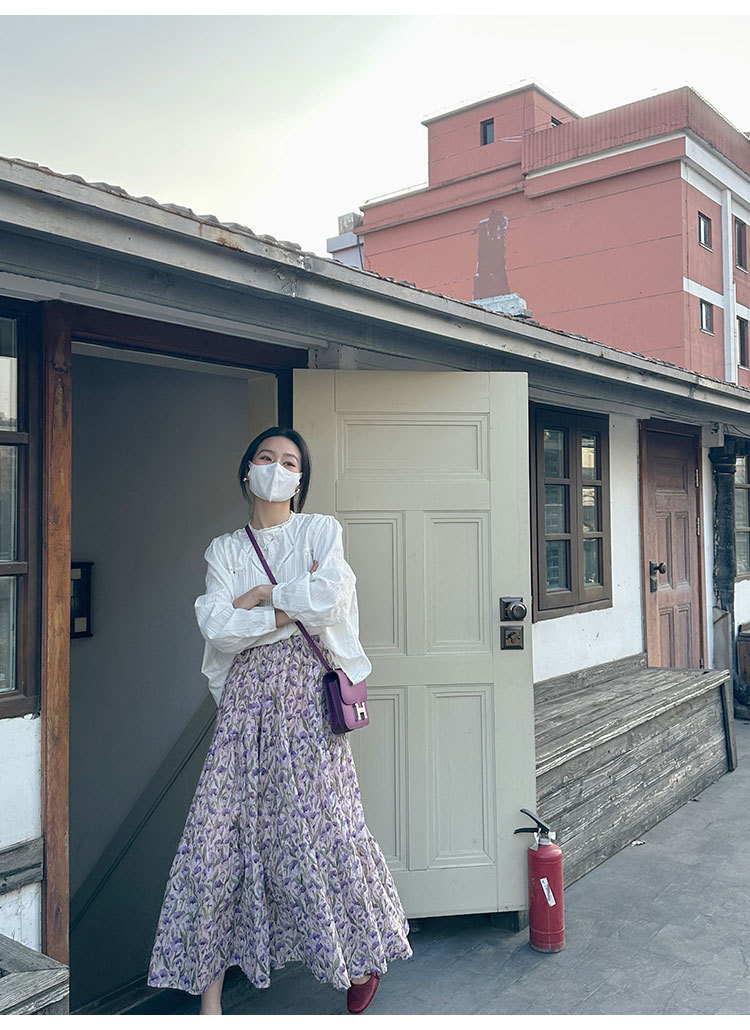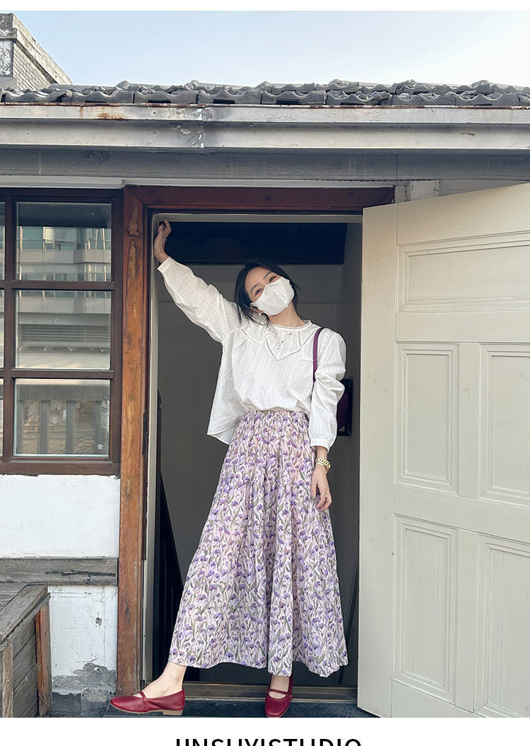 보라색 꽃 치마 여자 2025 여름 새로운 한국 스타일 부드러운 높은 허리 간단한 캐주얼 긴 치마스토어 가기