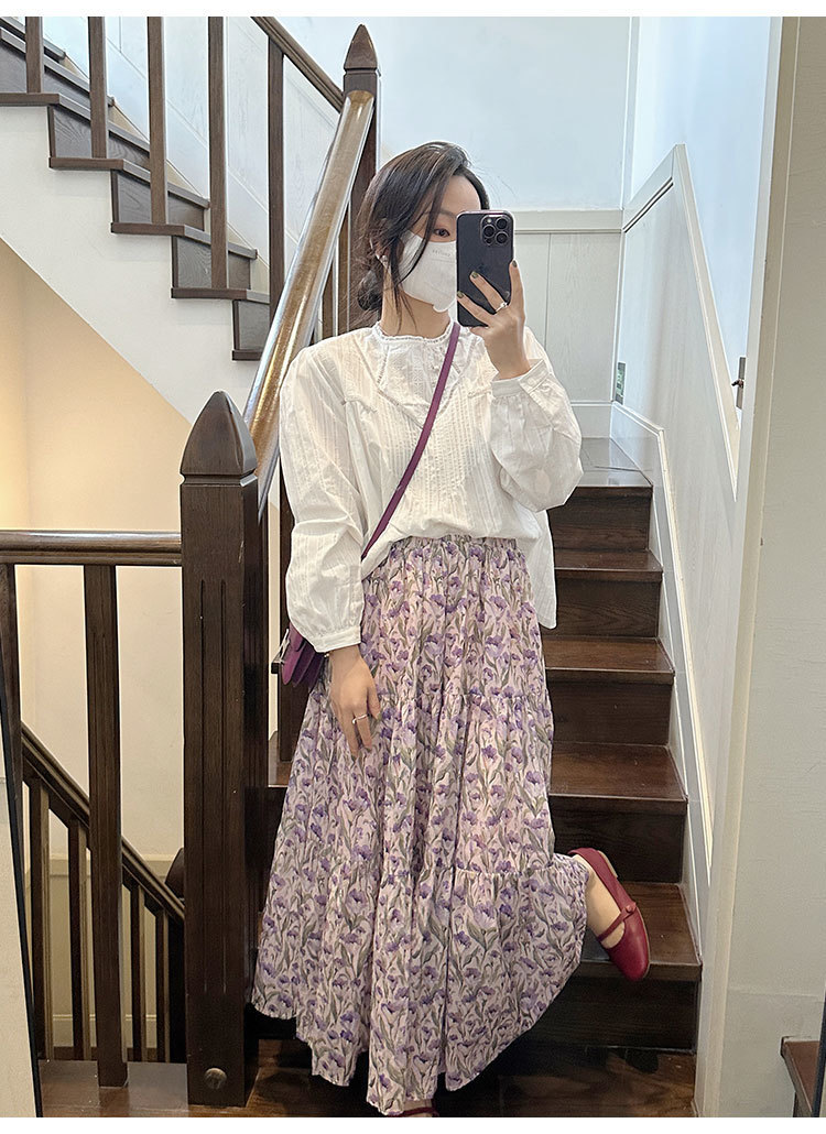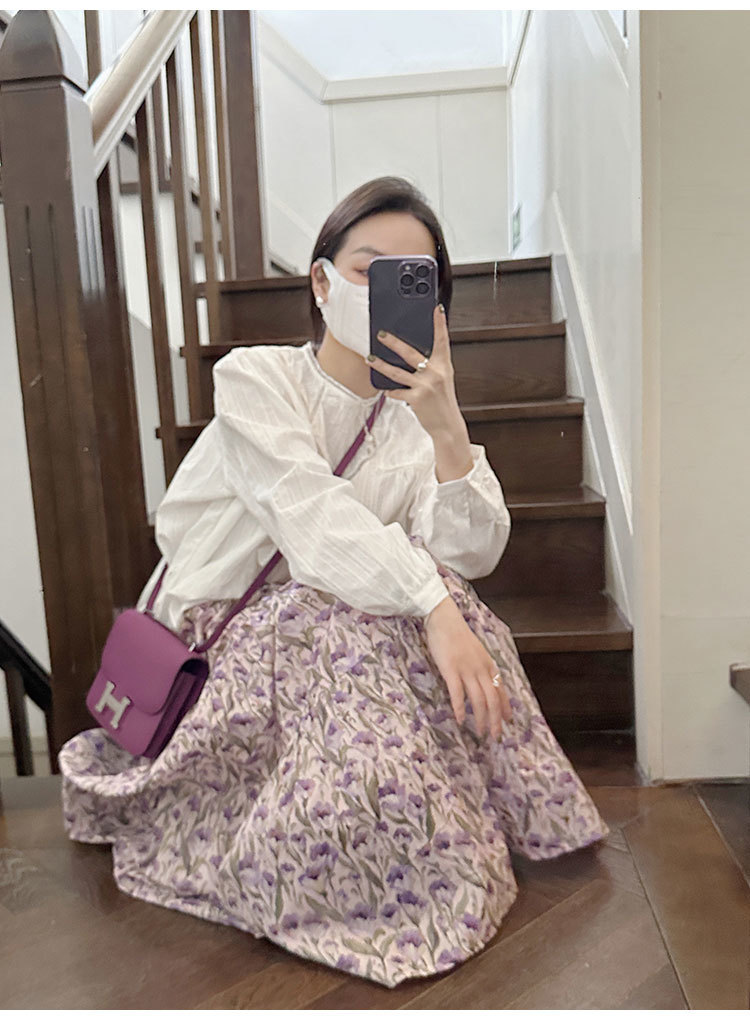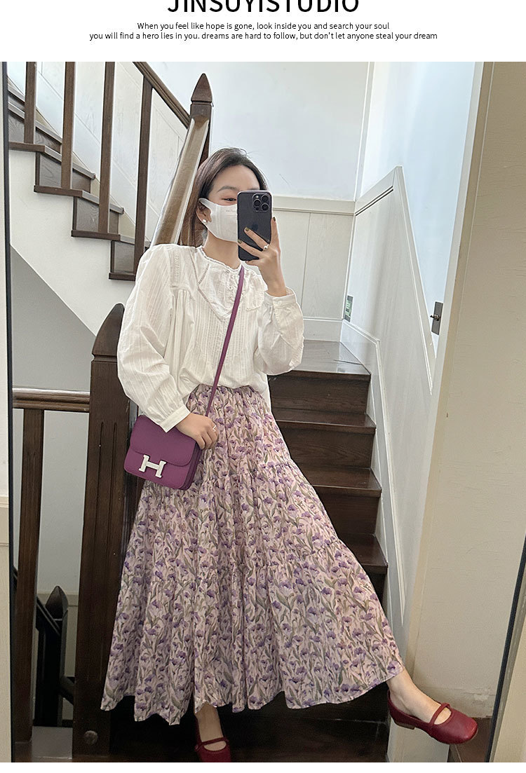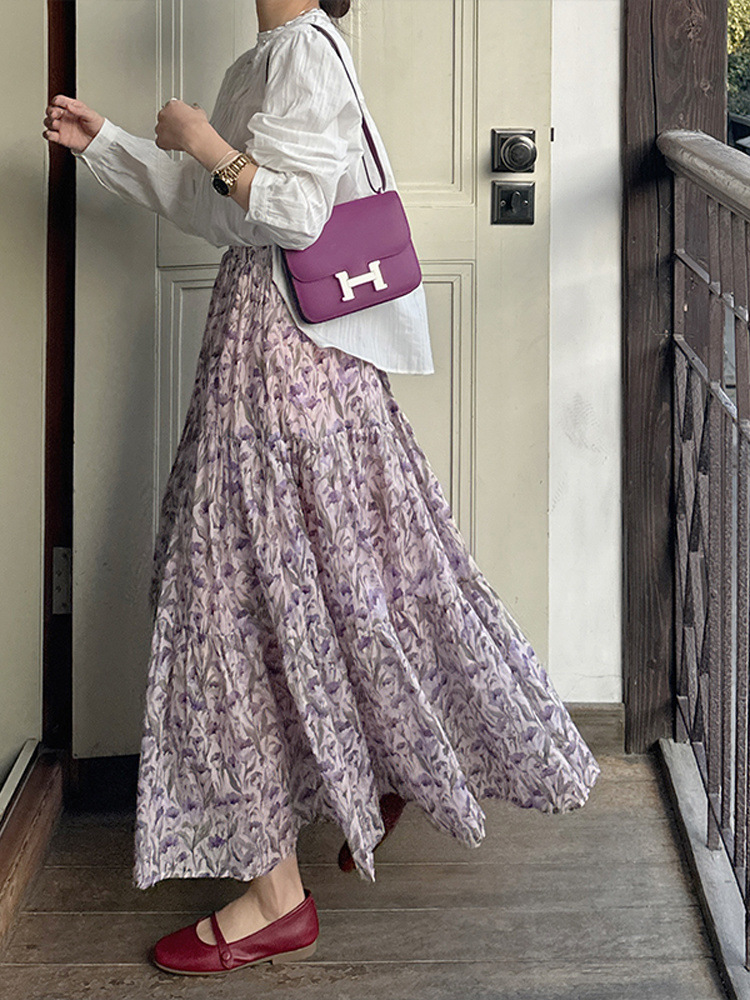 보라색 꽃 치마 여자 2025 여름 새로운 한국 스타일 부드러운 높은 허리 간단한 캐주얼 긴 치마
