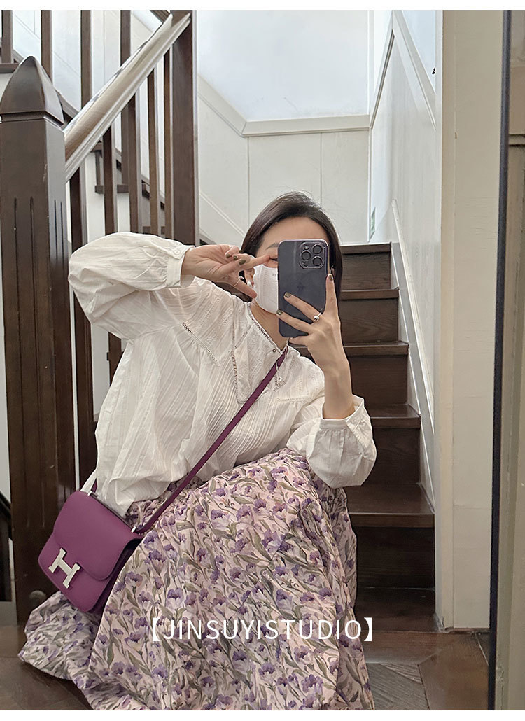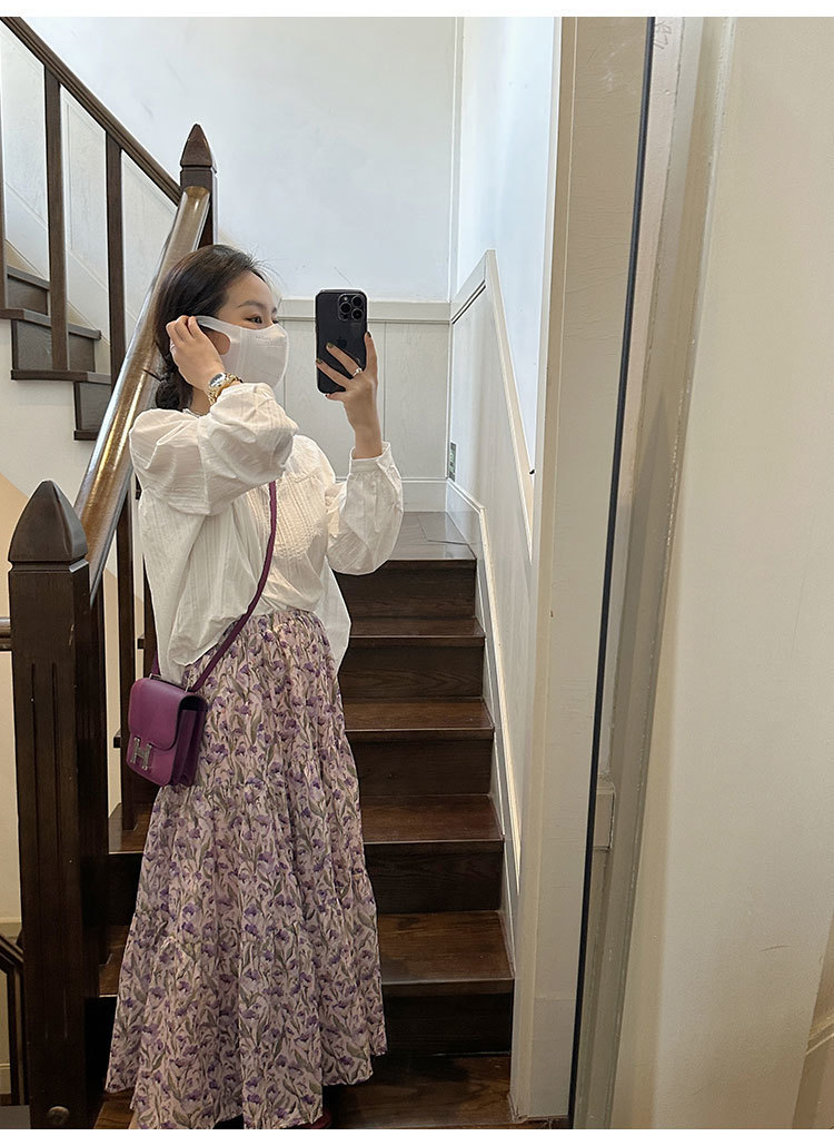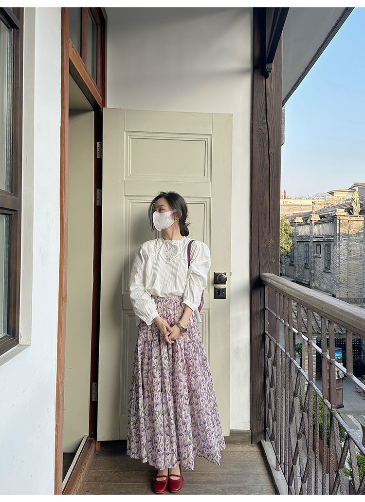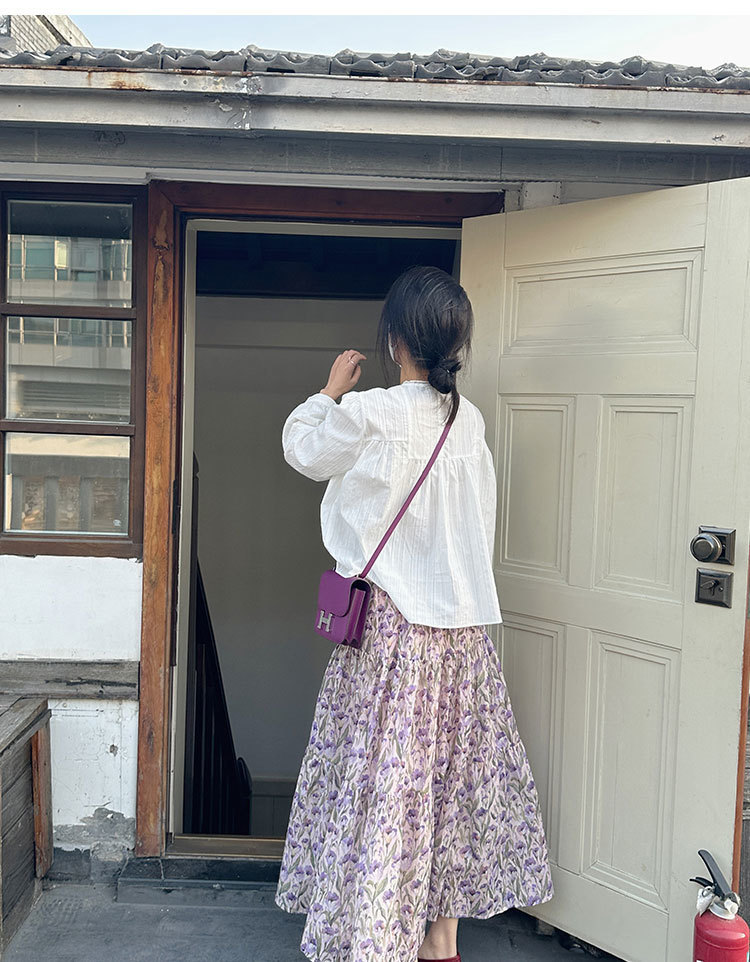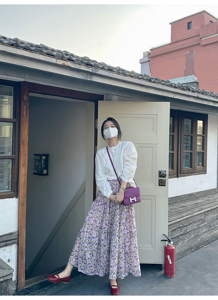 보라색 꽃 치마 여자 2025 여름 새로운 한국 스타일 부드러운 높은 허리 간단한 캐주얼 긴 치마