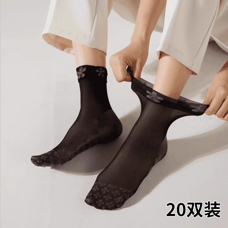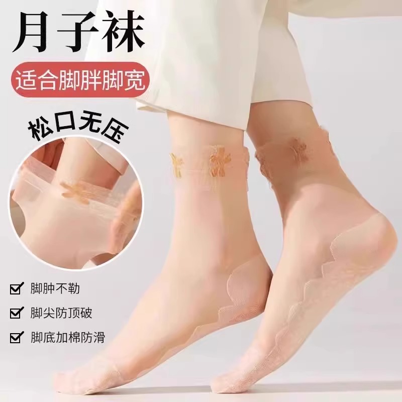 실크 스타킹 여성 여름 얇은 안티 훅 실크 레이스 느슨한 양말 면 하단 미끄럼 방지 미드 튜브 실크 스타킹 문 새로운 도착 다리 프리스토어 가기