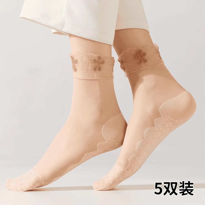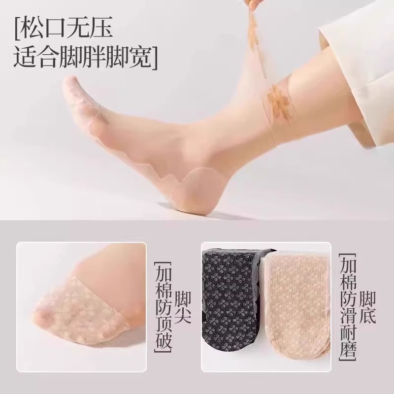 실크 스타킹 여성 여름 얇은 안티 훅 실크 레이스 느슨한 양말 면 하단 미끄럼 방지 미드 튜브 실크 스타킹 문 새로운 도착 다리 프리