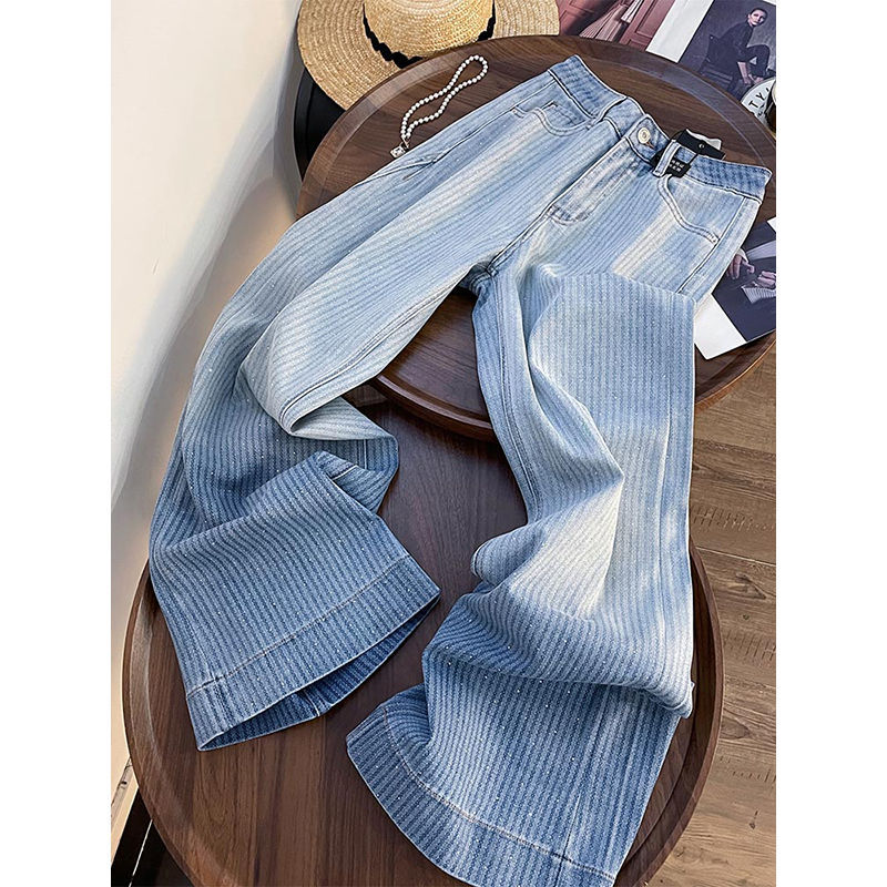 미국 스타일 중공업 레트로 높은 허리 넓은 다리 청바지 여성의 2025 새로운 블루 루즈 라인스톤 좁은 직선 바지스토어 가기