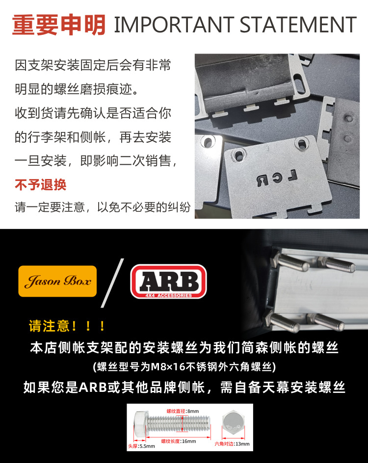 Jensen 야외 자동차 사이드 텐트 홀더 부드러운 천 하드 알루미늄 쉘 장착 브래킷 사이드 캐노피 수하물 랙 클립 ARB스토어 가기