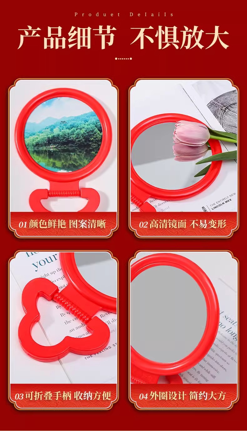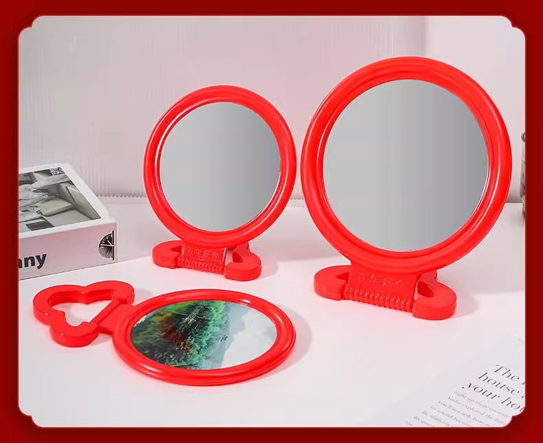 빈티지 거울 벽걸이 메이크업 거울 침실 데스크 거울 결혼식 동반 빨간 신부 교수형 거울 대형 단면 핸드 헬드