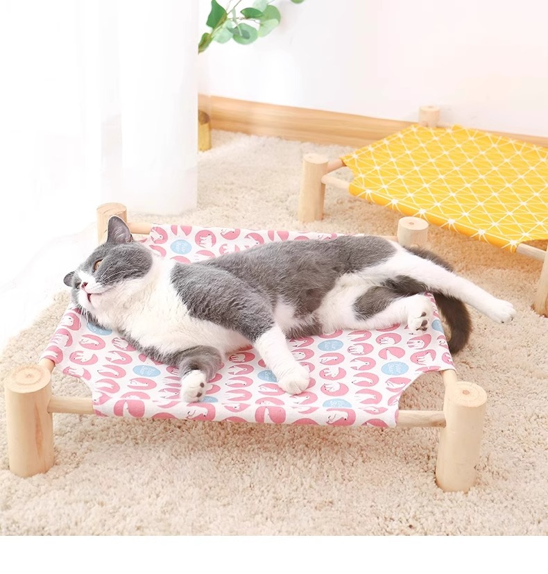 애완 동물 캠프 침대 고양이 개집 여름 개 침대 이동식 및 빨 수있는 나무 사계절 사용 가능한 고양이 매트 개 사육장 개 캠프 침대