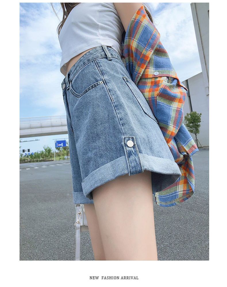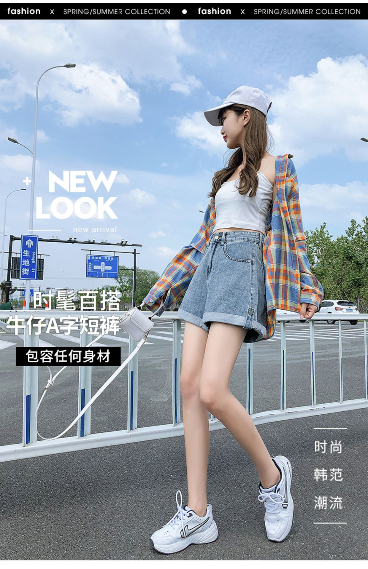 플러스 사이즈 통통녀 데님 반바지 여자 여름 높은 허리 배 모양의 몸 슬리밍 아우터웨어 올 매치 A 라인 와이드 레그 핫 팬츠