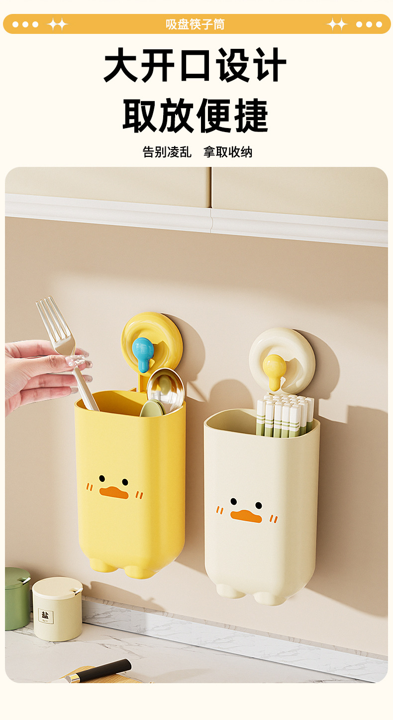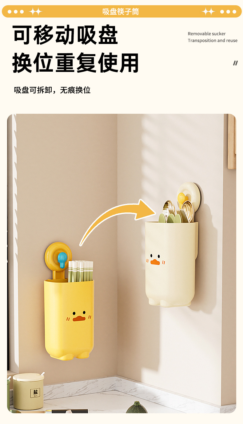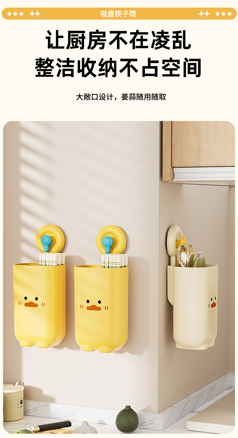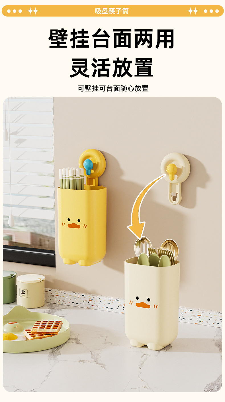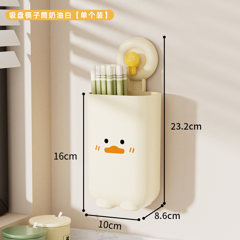 • 商品名称:卡通厨房吸盘壁挂叉勺筷子筒 多用途加高镂空收纳盒--奶油白