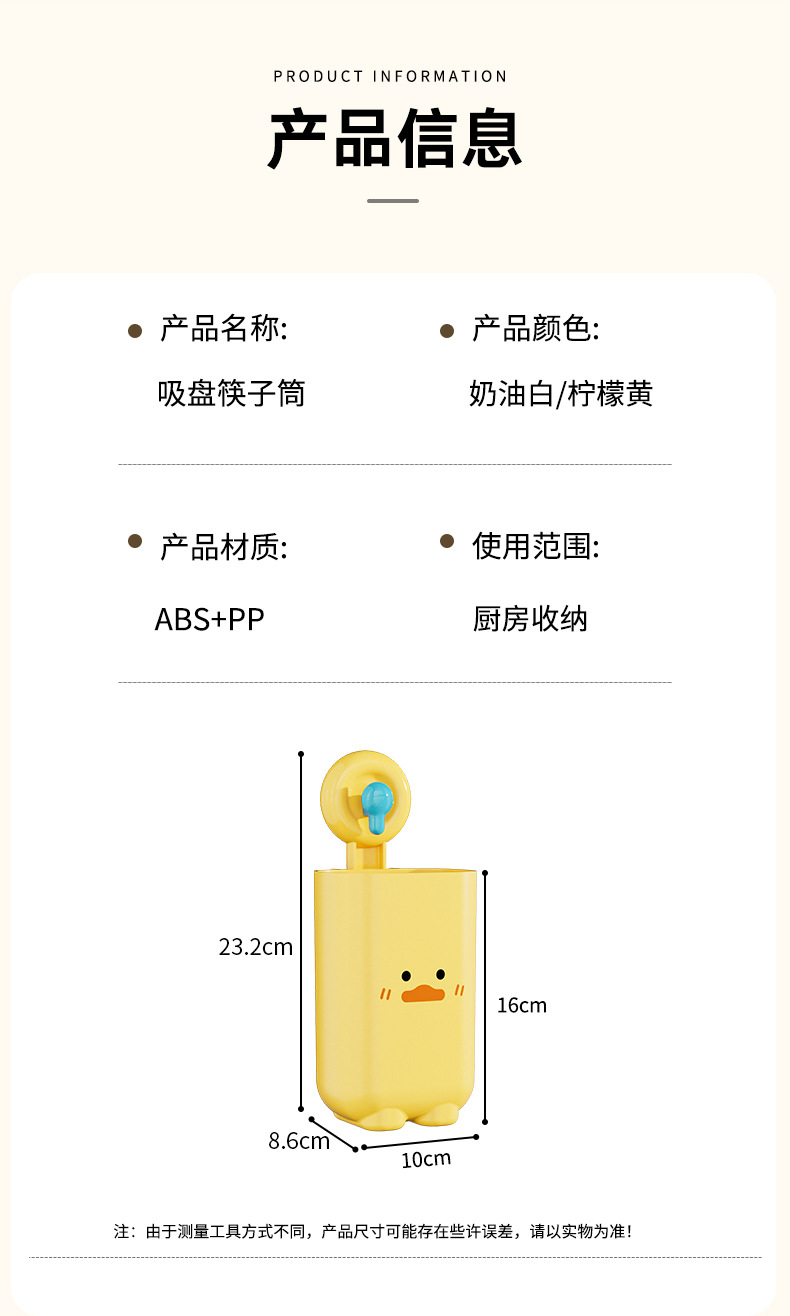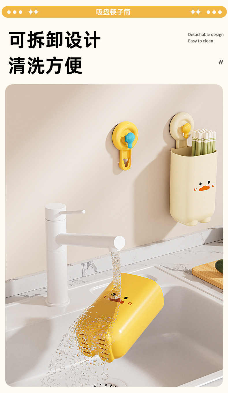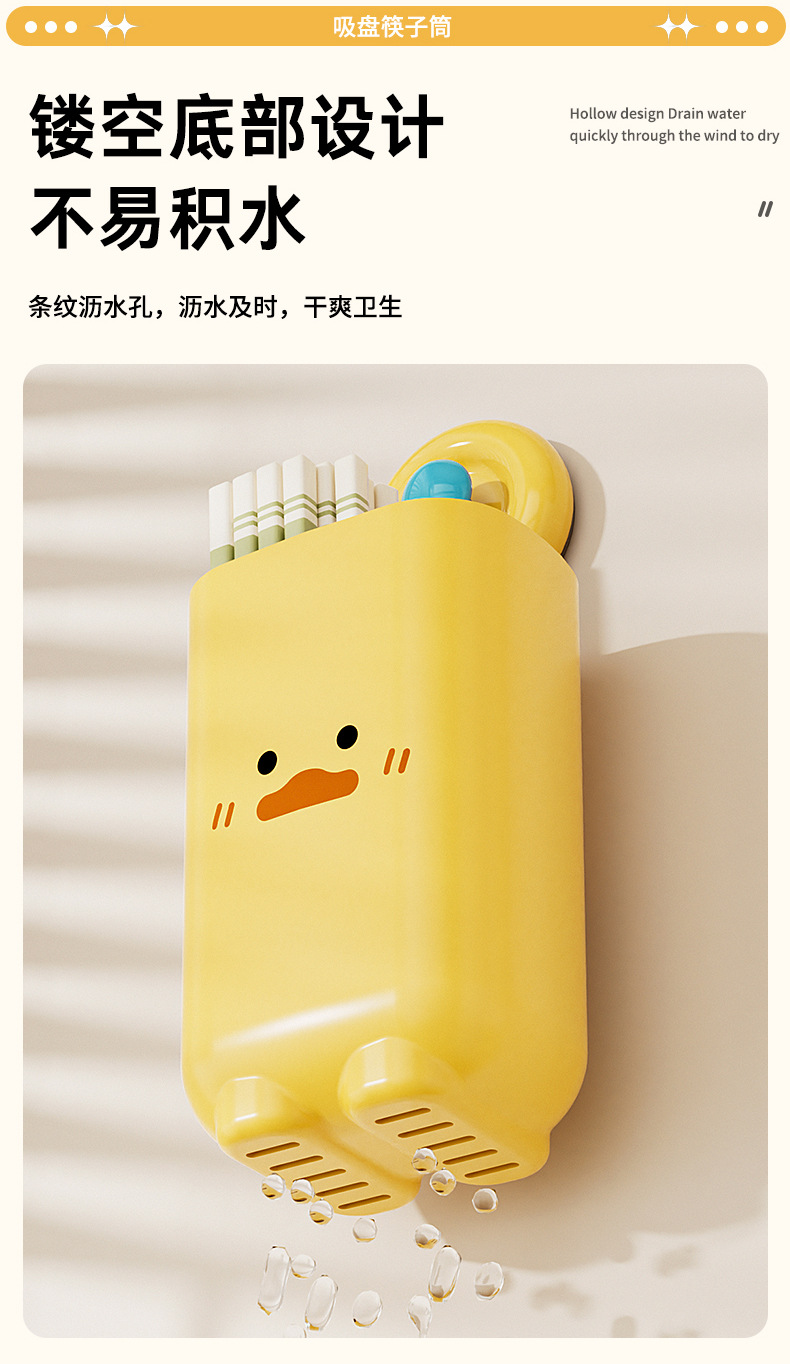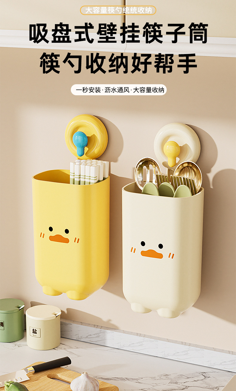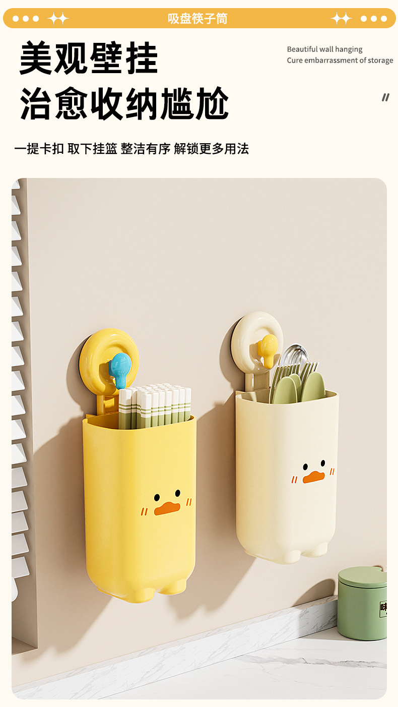 • 商品名称:卡通厨房吸盘壁挂叉勺筷子筒 多用途加高镂空收纳盒--奶油白