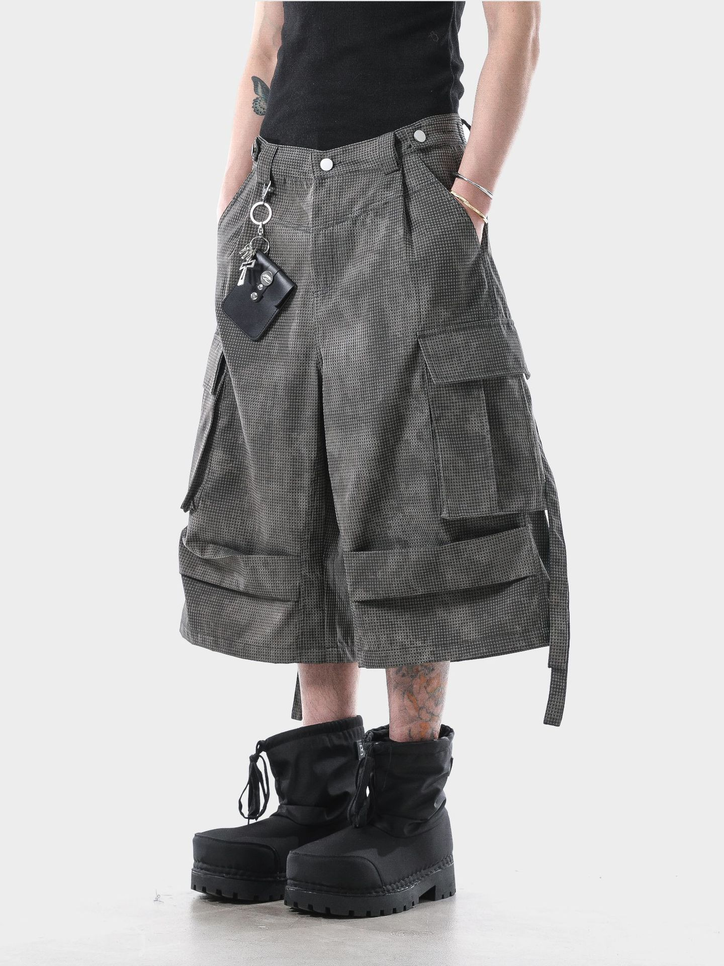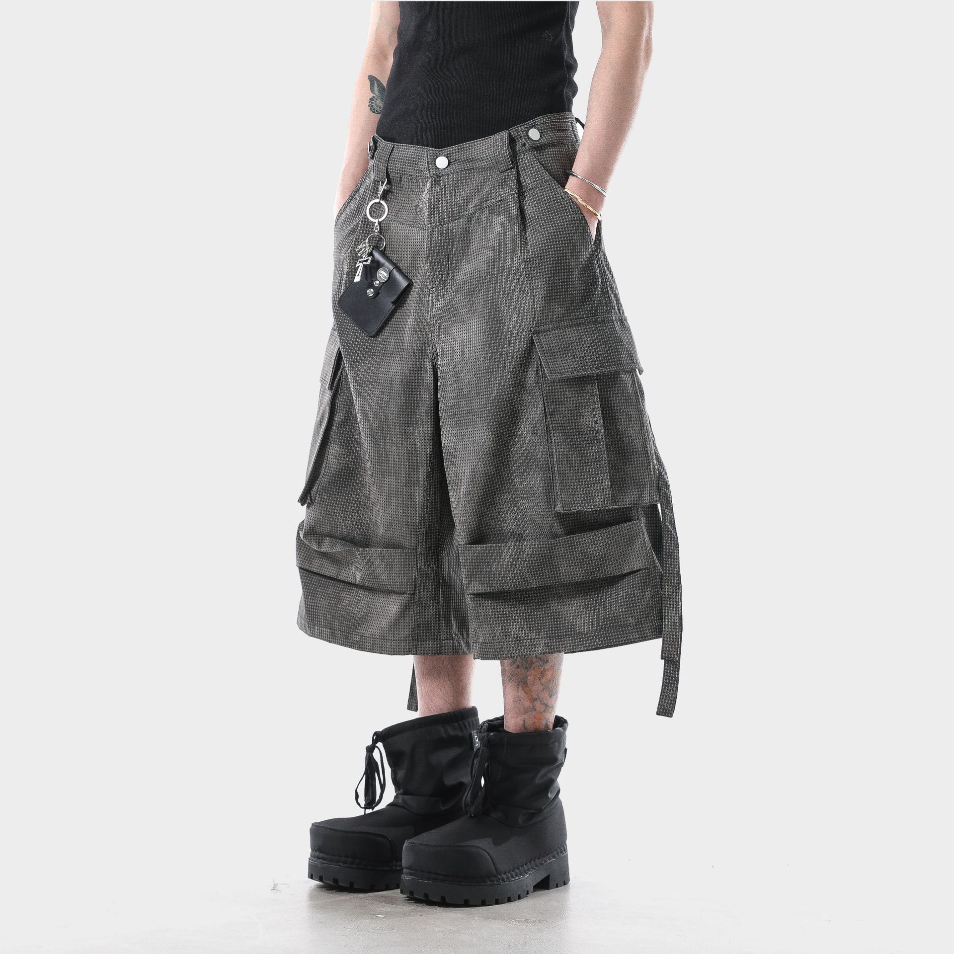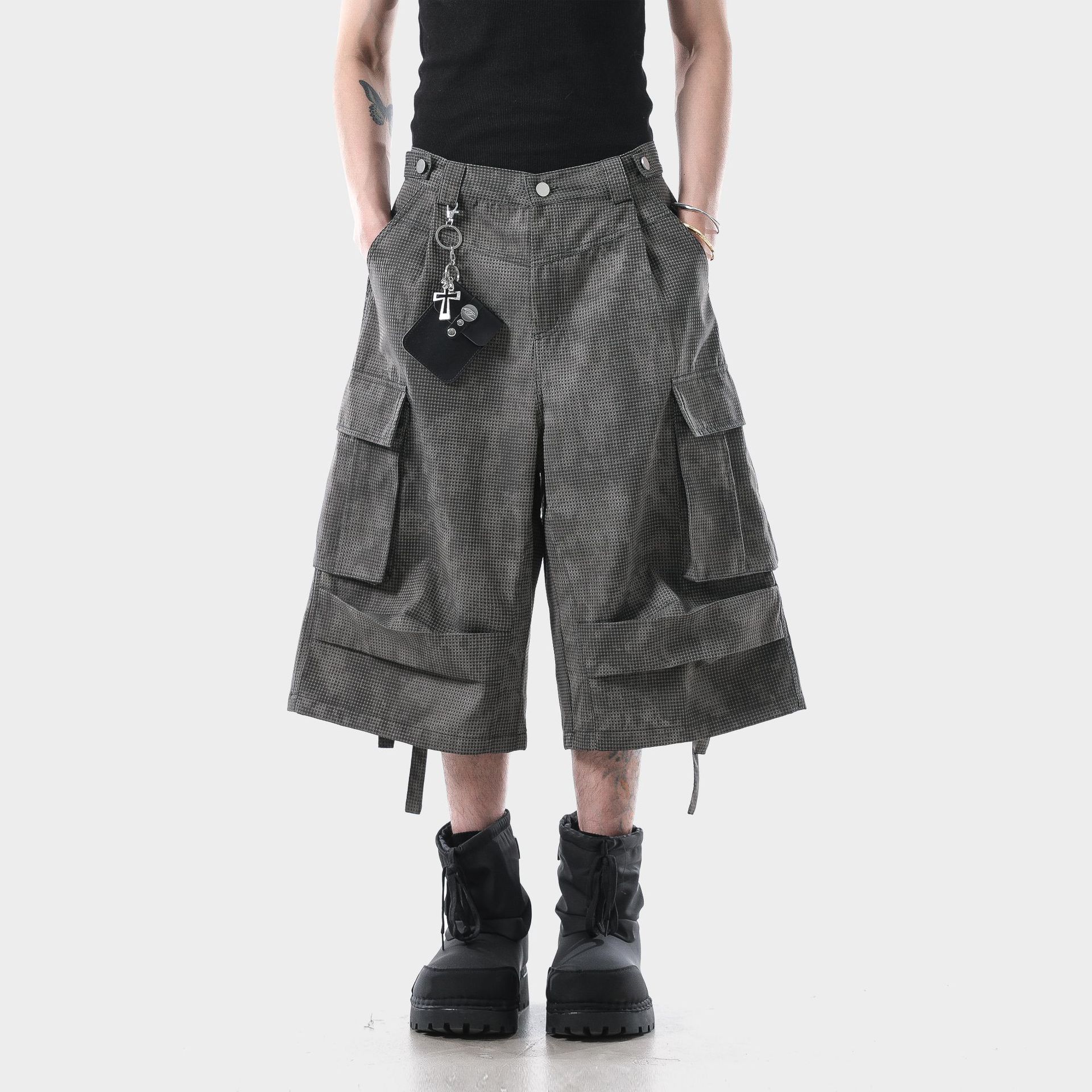 아메리칸 스타일 하이 스트리트 디자인 센스 스트리머 작업복 카프리 팬츠 남성용 러피 핸섬 아메리칸 루즈 바이브 반바지 얇은 카프리 바지
