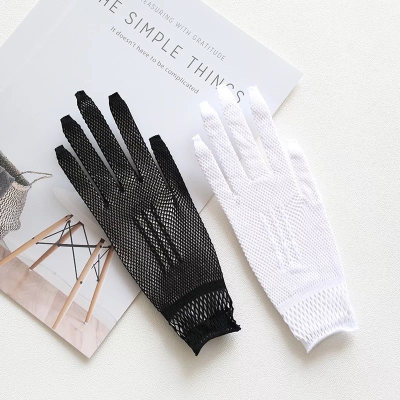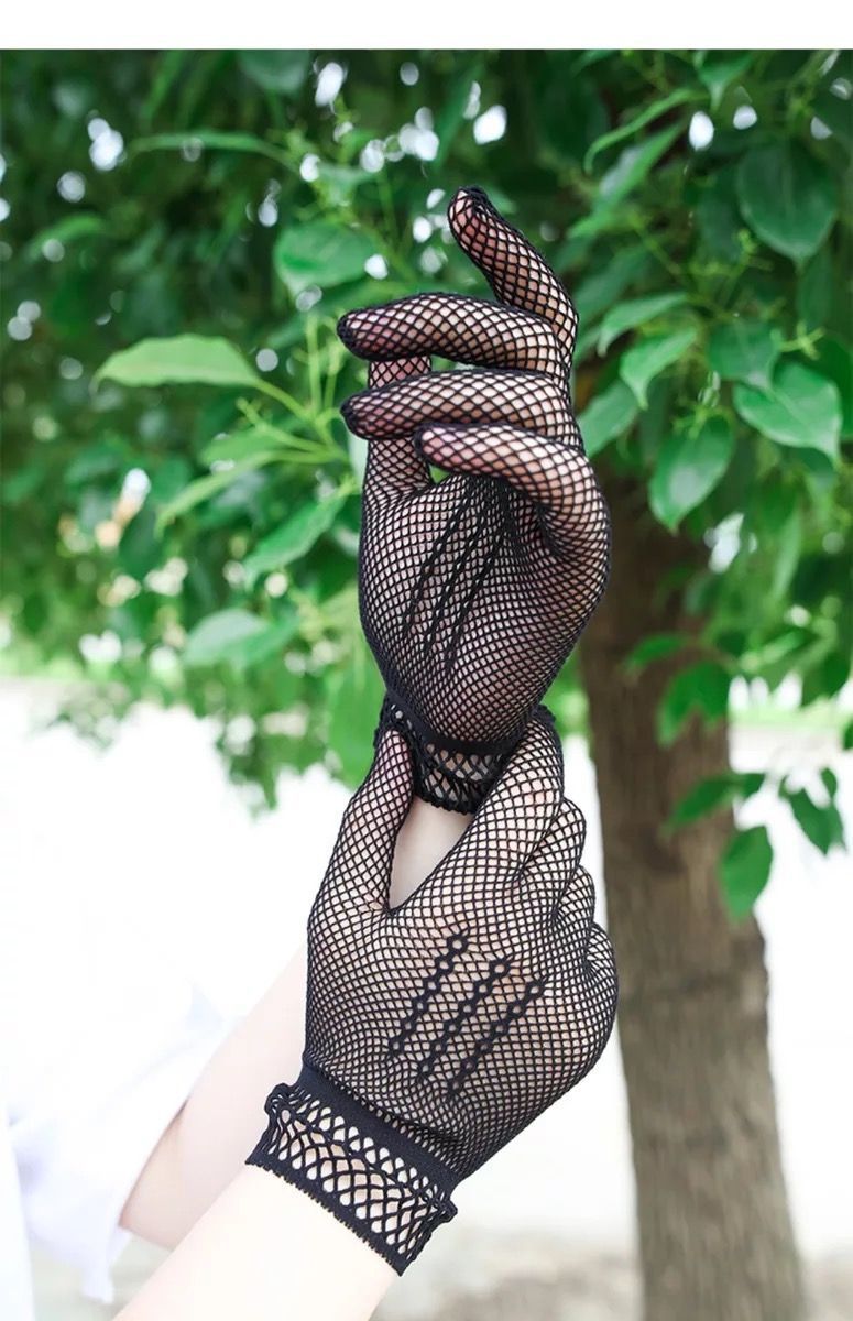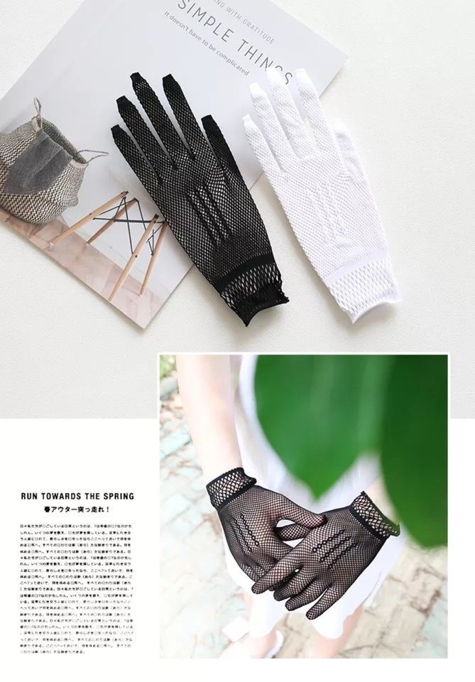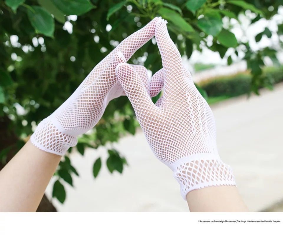 여성을위한 초박형 통기성 레이스 장갑 여름 메쉬 탄성 우아한 태양 보호 Fishnet 원사 신부 예배 공연 댄스 장갑