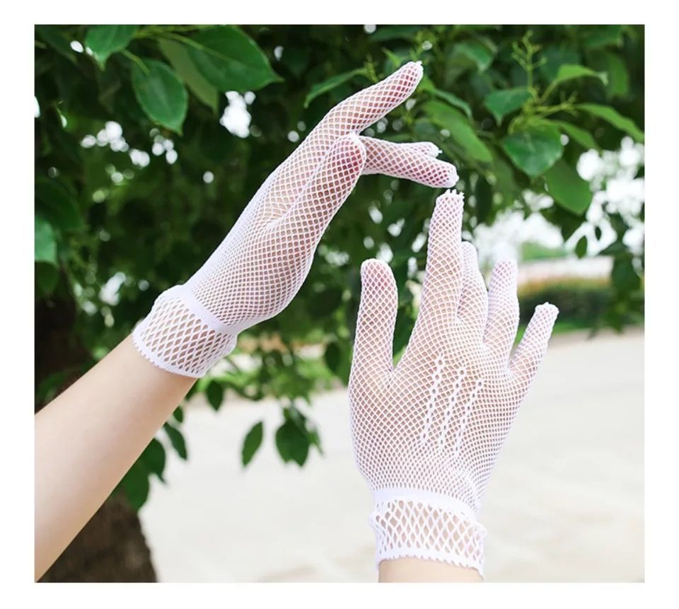 여성을위한 초박형 통기성 레이스 장갑 여름 메쉬 탄성 우아한 태양 보호 Fishnet 원사 신부 예배 공연 댄스 장갑스토어 가기