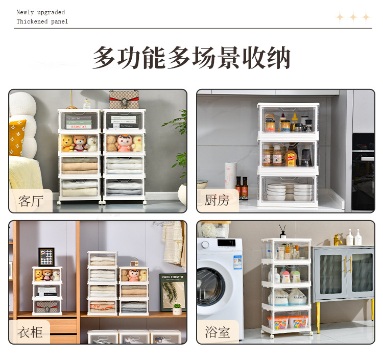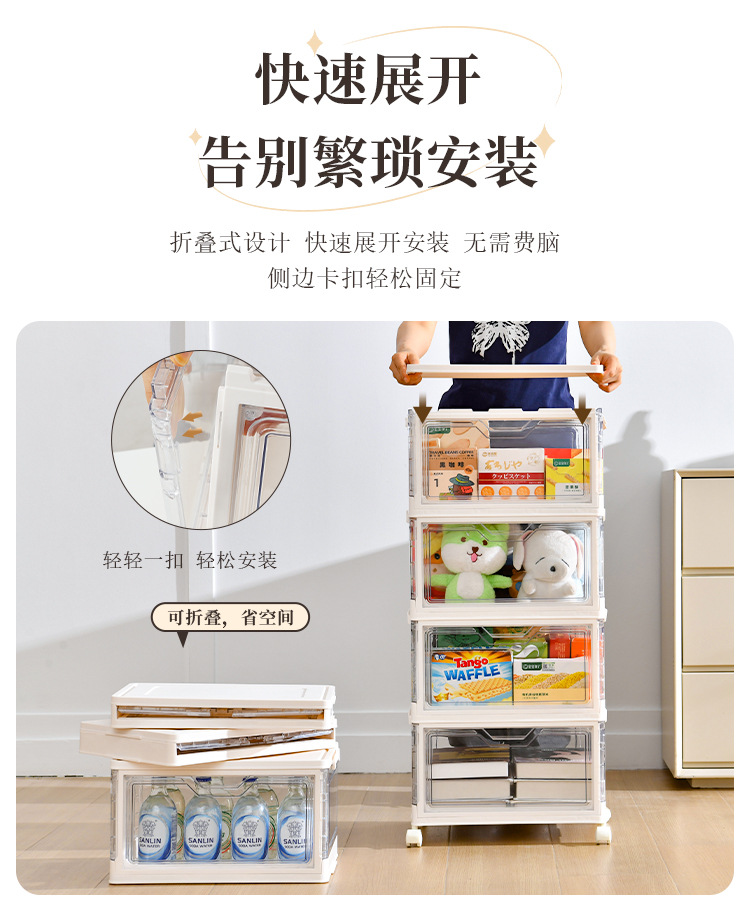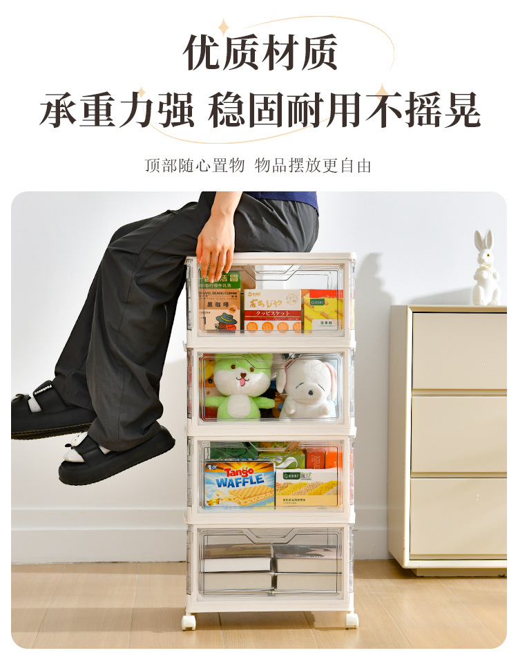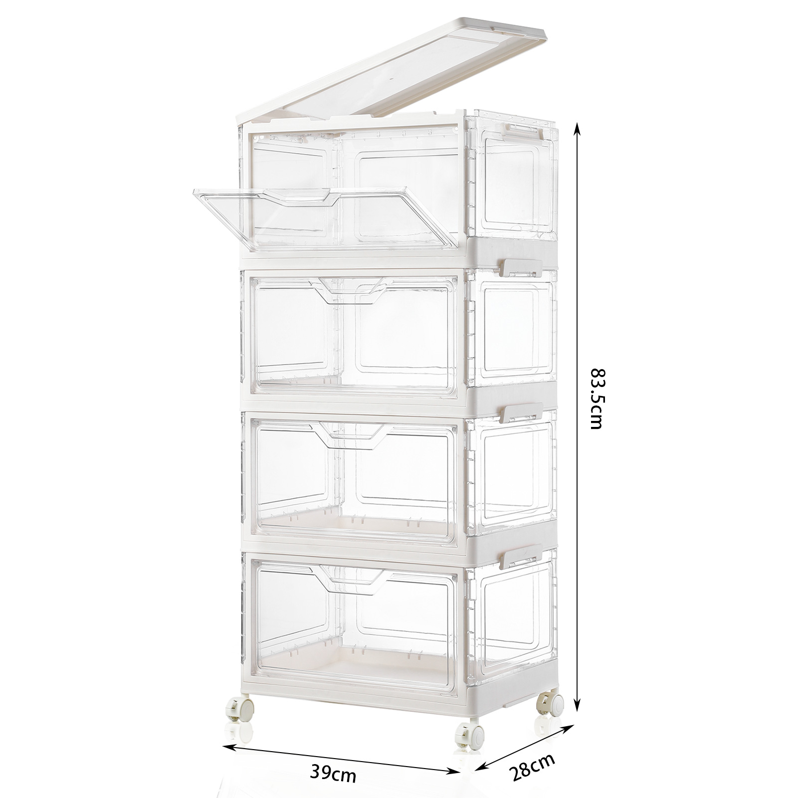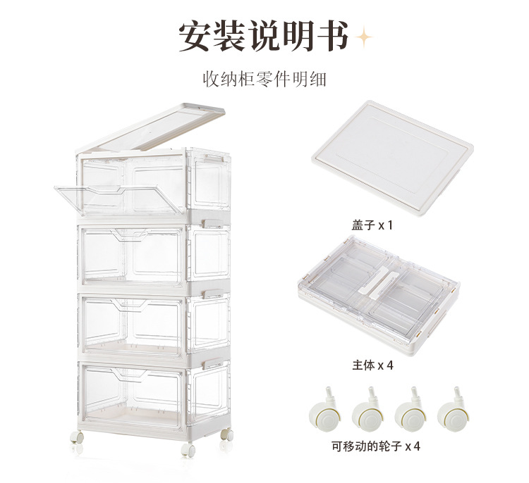 • 바퀴 달린 크림 화이트 4단 스태킹 세트 [PP도어]