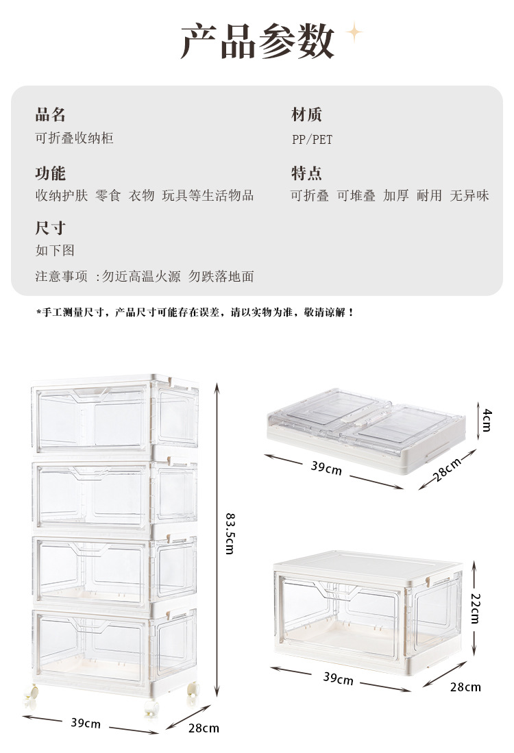 • 바퀴가 없는 투명한 4단 스태킹 세트