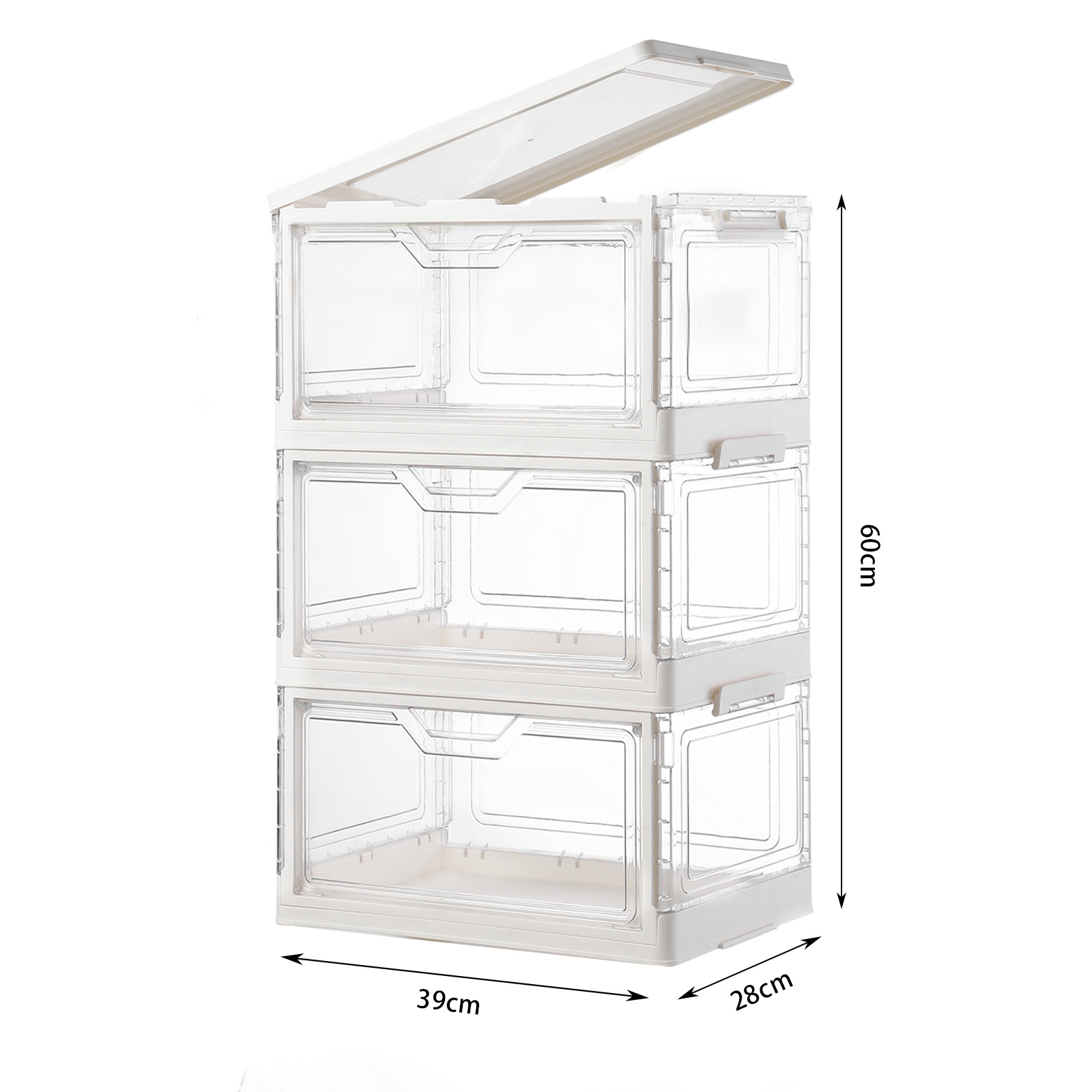 • 바퀴 없는 크림화이트 3단 스태킹 세트 [PET 도어]