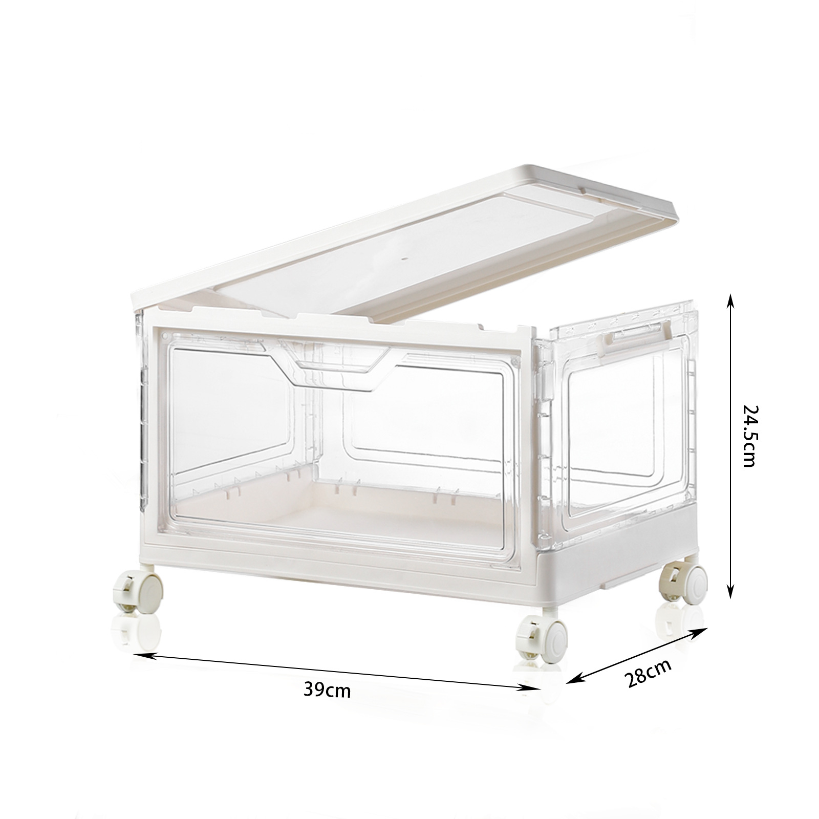 • 바퀴가 달린 투명한 4단 스태킹 세트