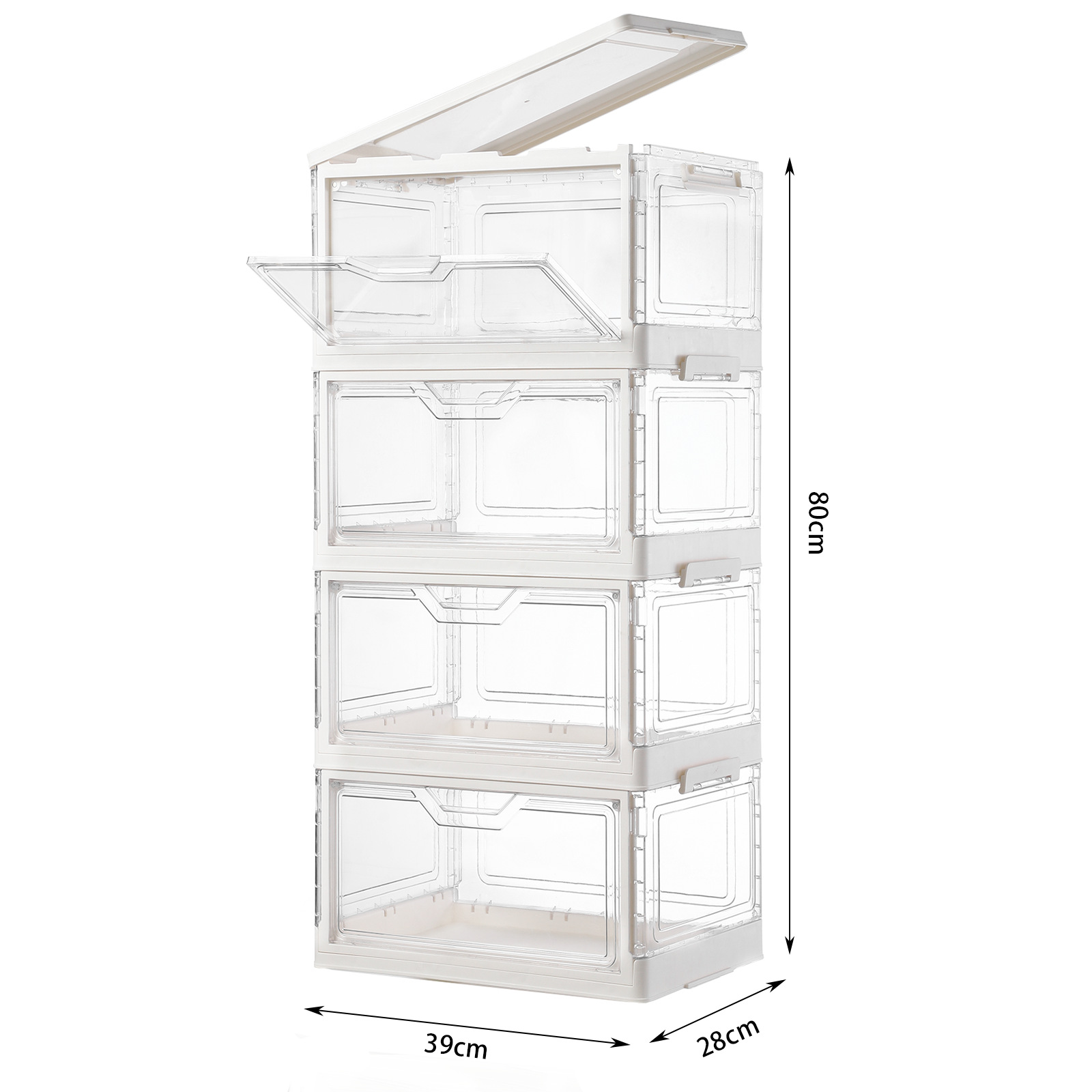 • 바퀴 없는 크림화이트 4단 스태킹 세트 [PET 도어]