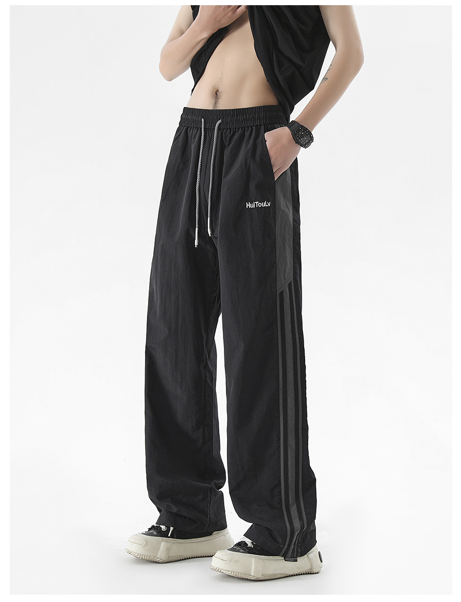 봄과 여름 트렌디 한 브랜드 캐주얼 스티칭 대비 컬러 충전 바지 크레인 바지 남성 국가 트렌디 트랙 잘 생긴 느슨한 스포츠 빠른 건조 긴 바지스토어 가기